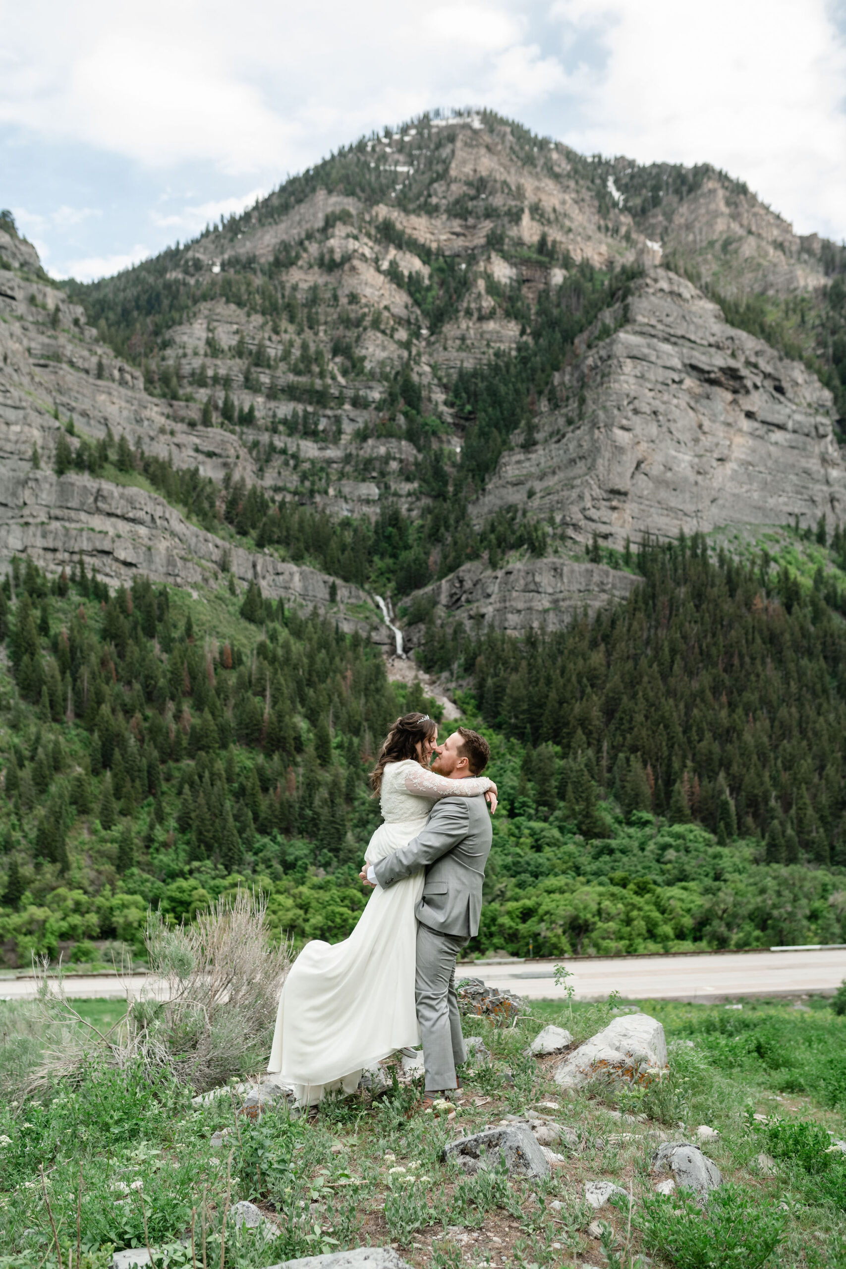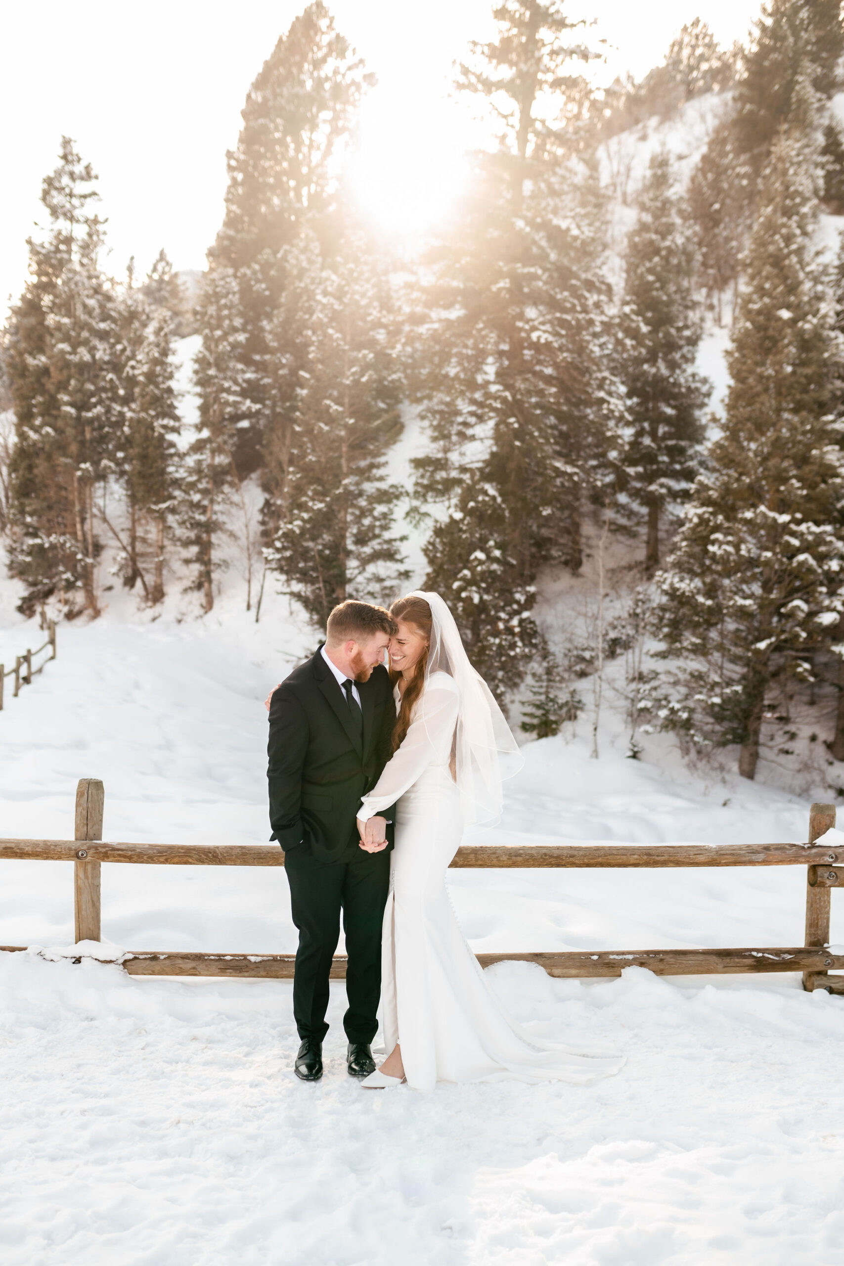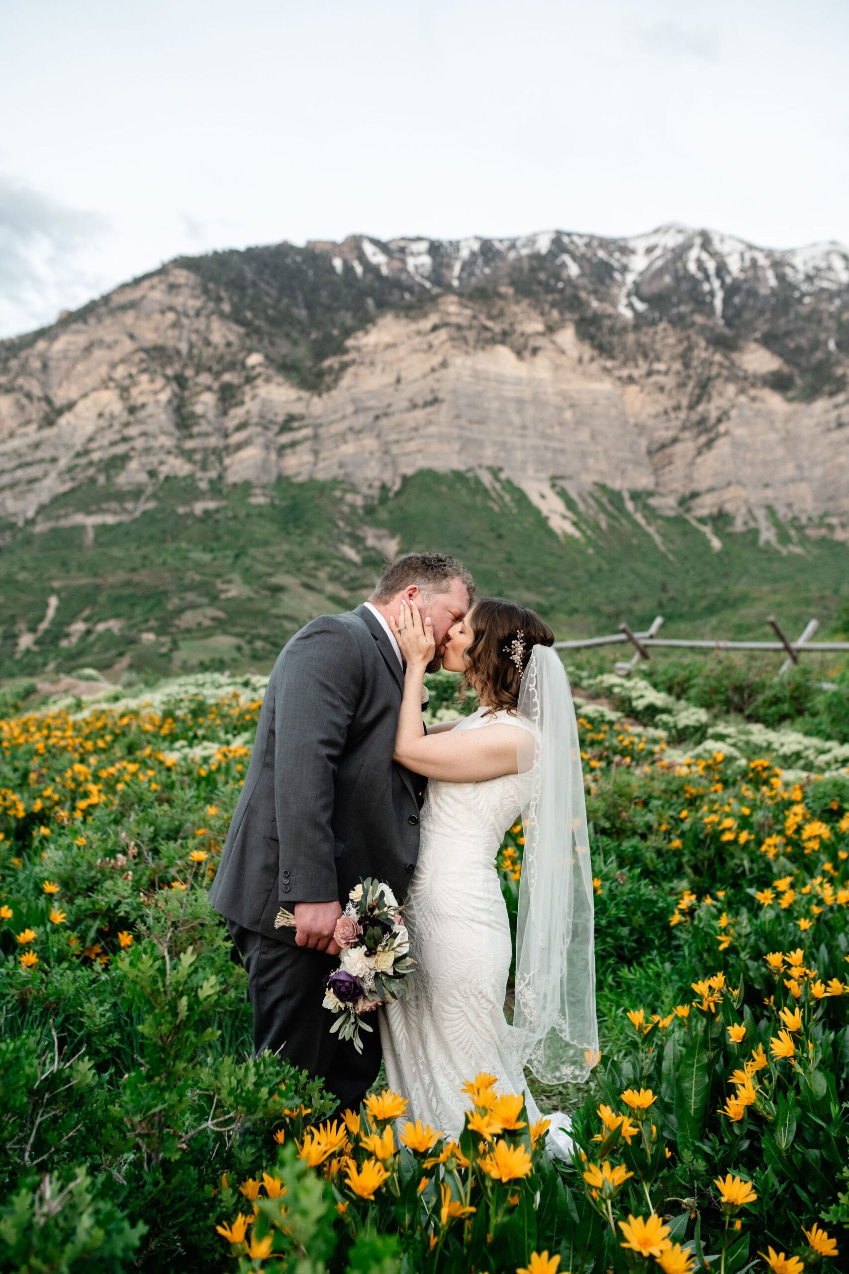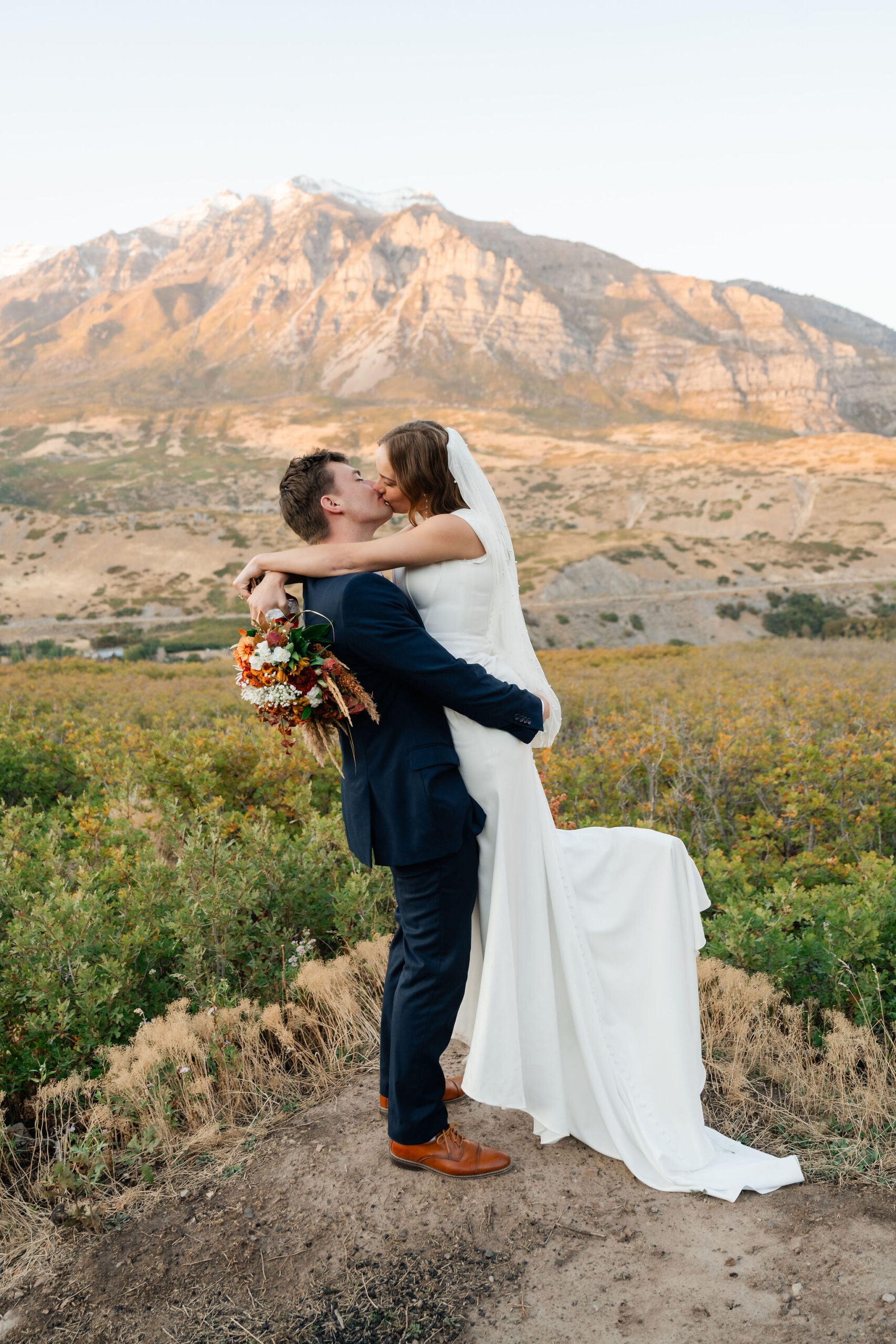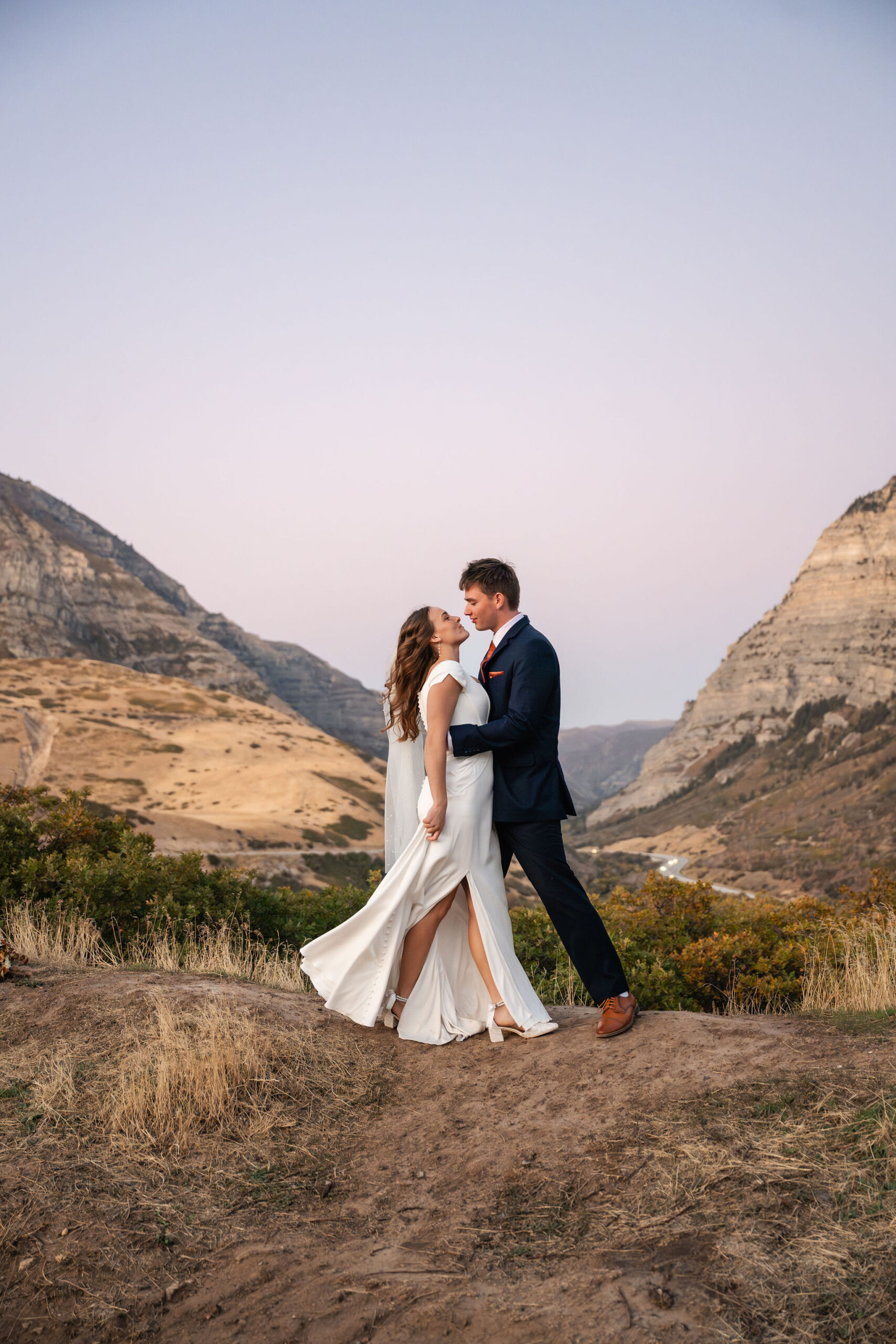 Our first location in Provo Canyon, Kyhv Peak is an unbeatable location with an unbeatable view, like in Rebekah and Sam’s bridals. “It is literally right off a large parking lot in Provo Canyon. It has stunning views, a darling wooden fence, and is accessible year-round!”