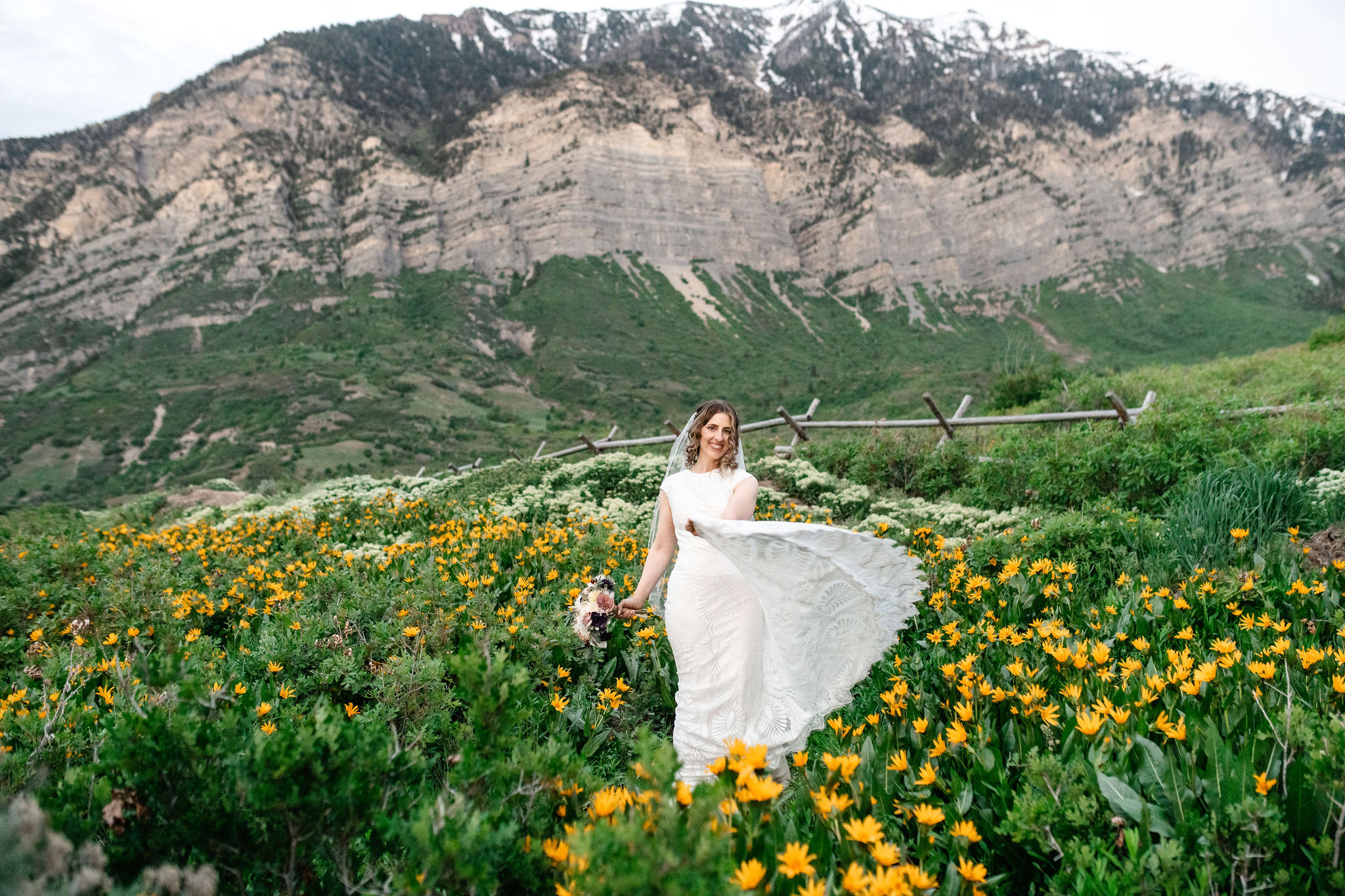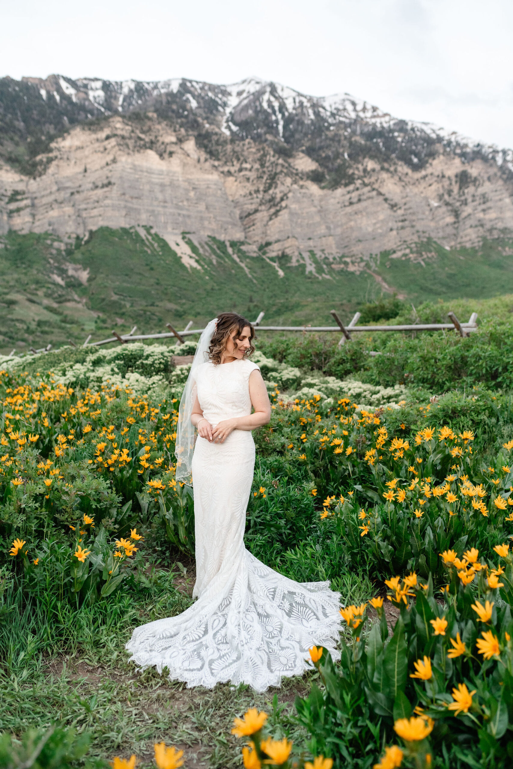 Moving right on up the mountainside into Heber Valley will give you amazing shots like these from Shantell and Josh’s bridals in Heber Canyon. “It has a quintessential Utah canyon feel with the yellow grasses, pines, and cedar trees.”