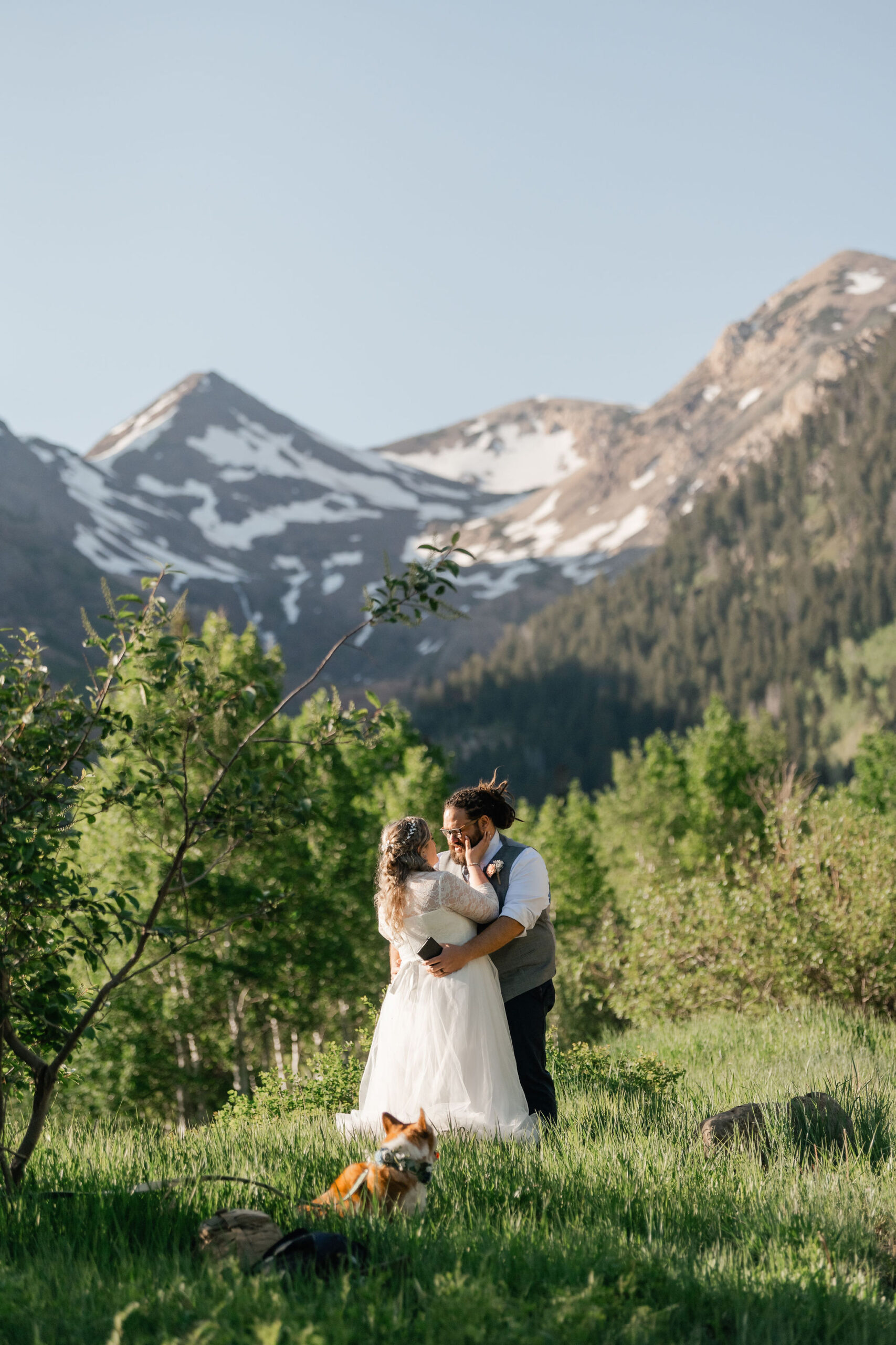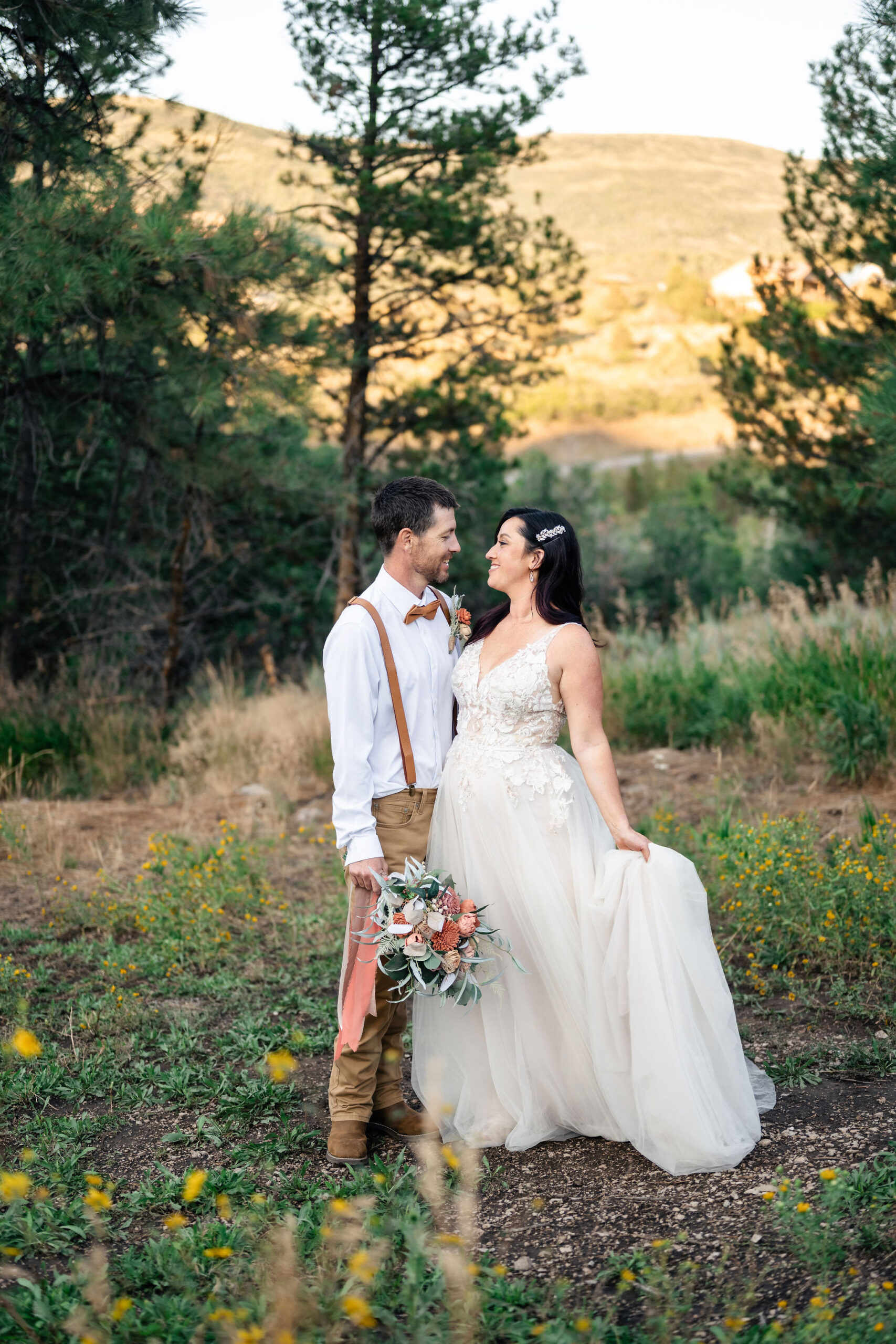 Coley loves Silver Lake forest bridals location because “It has everything! Mountain peaks, an alpine lake, aspen trees, and tall pines.” Hannah and Cade’s bridals are more than just magical; the sunlight filtering through the trees and glistening over the tall grass makes us feel like we’re in a fairytale with them.