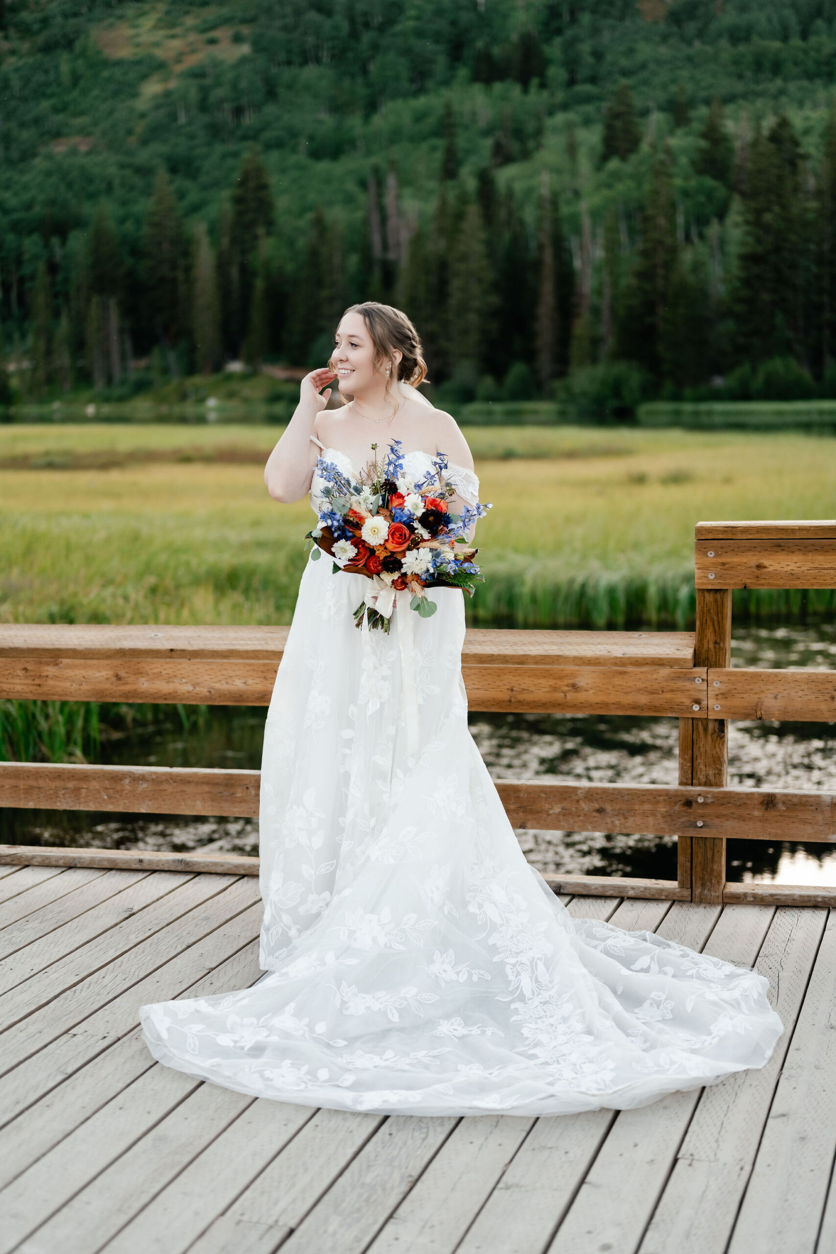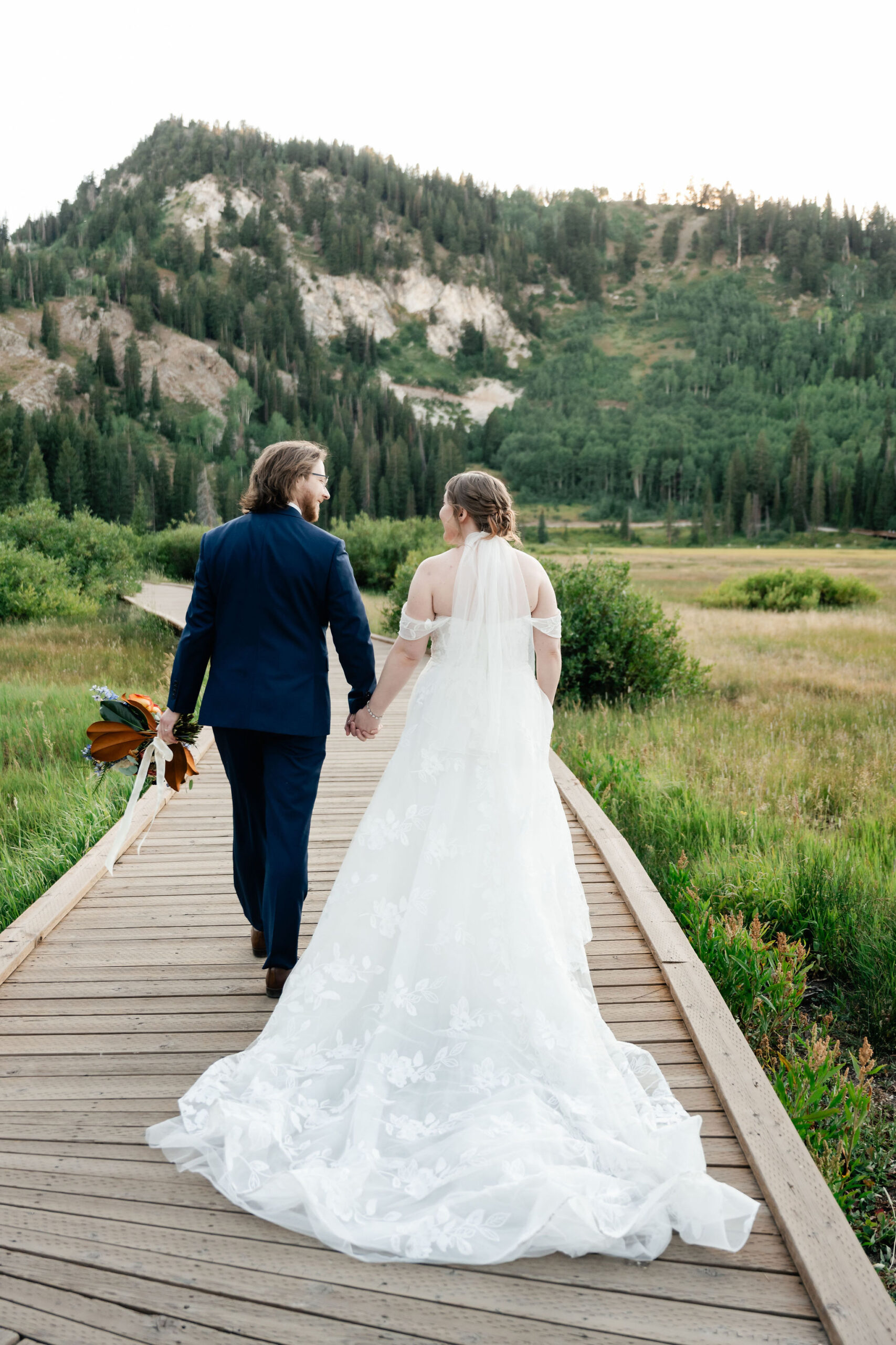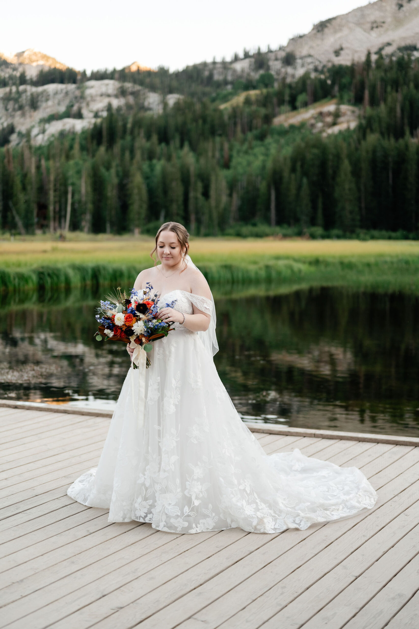 “The mountain views and alpine lake are absolutely stunning. There are so many areas to follow trails to get a deeper forest feel in the aspens as well.” Located above the beloved Tibble Fork Reservoir, Silver Lake in AF is an unbeatable must-visit for anyone who loves Utah’s hiking and nature. But for Kelsey and David’s bridals? Even better.