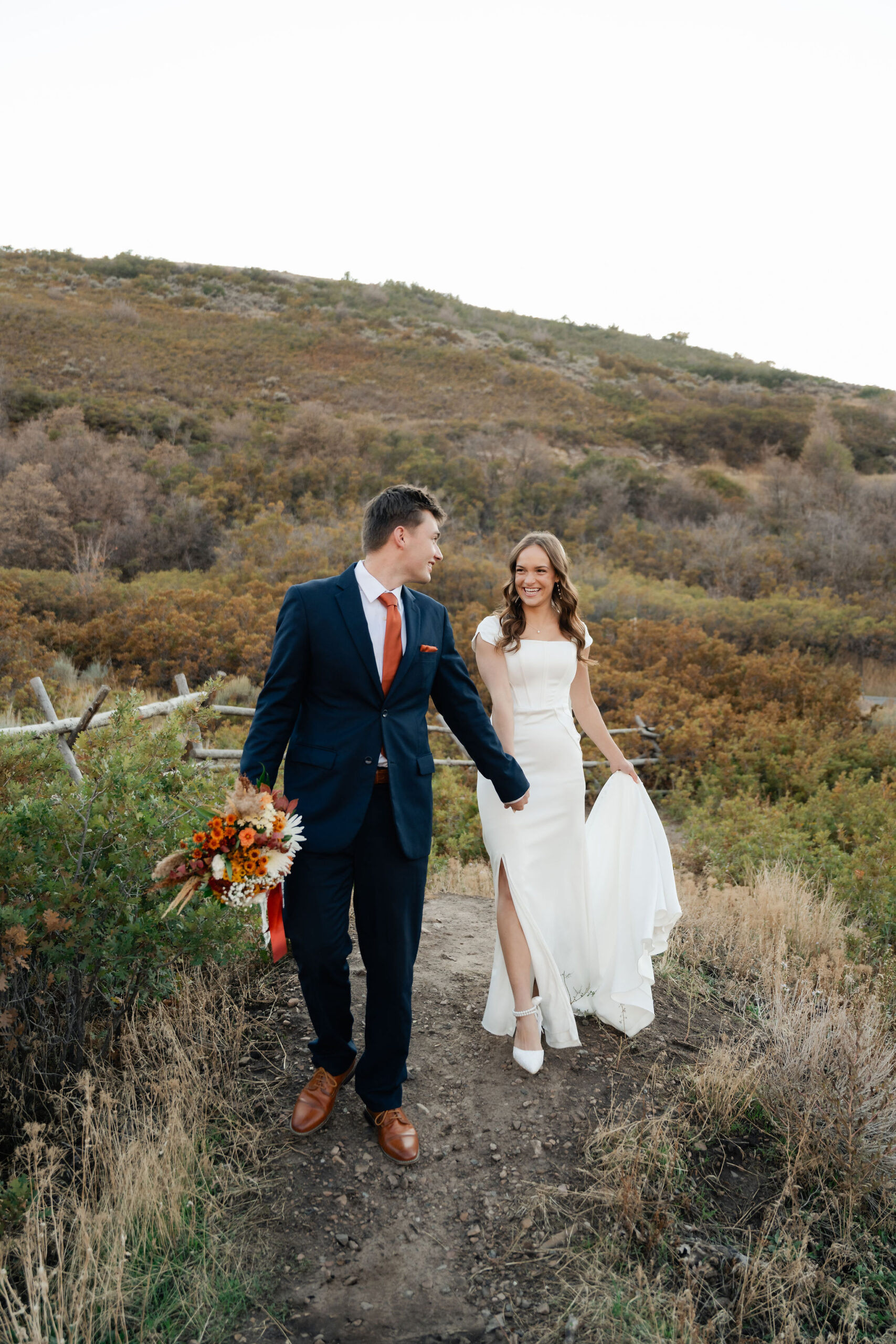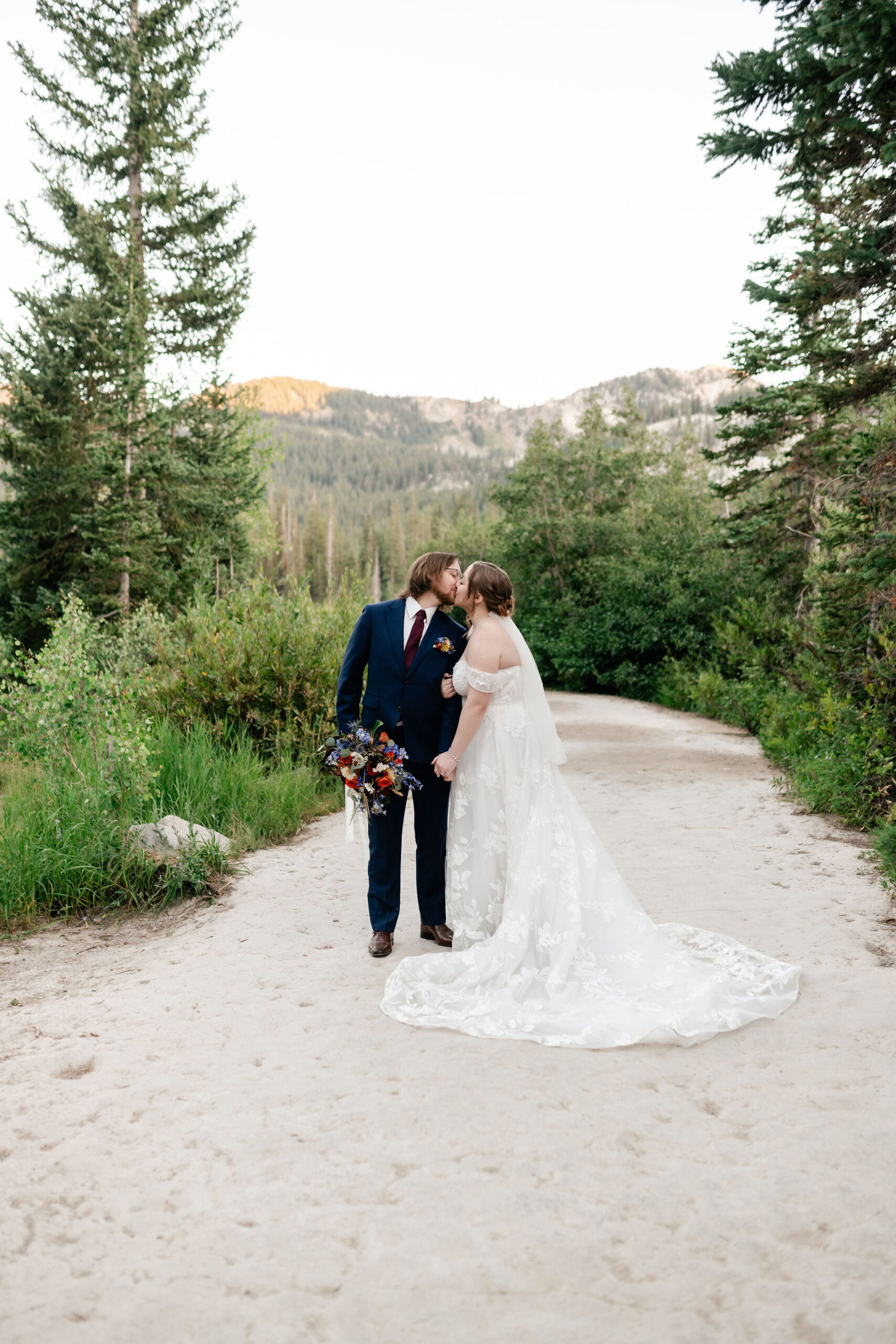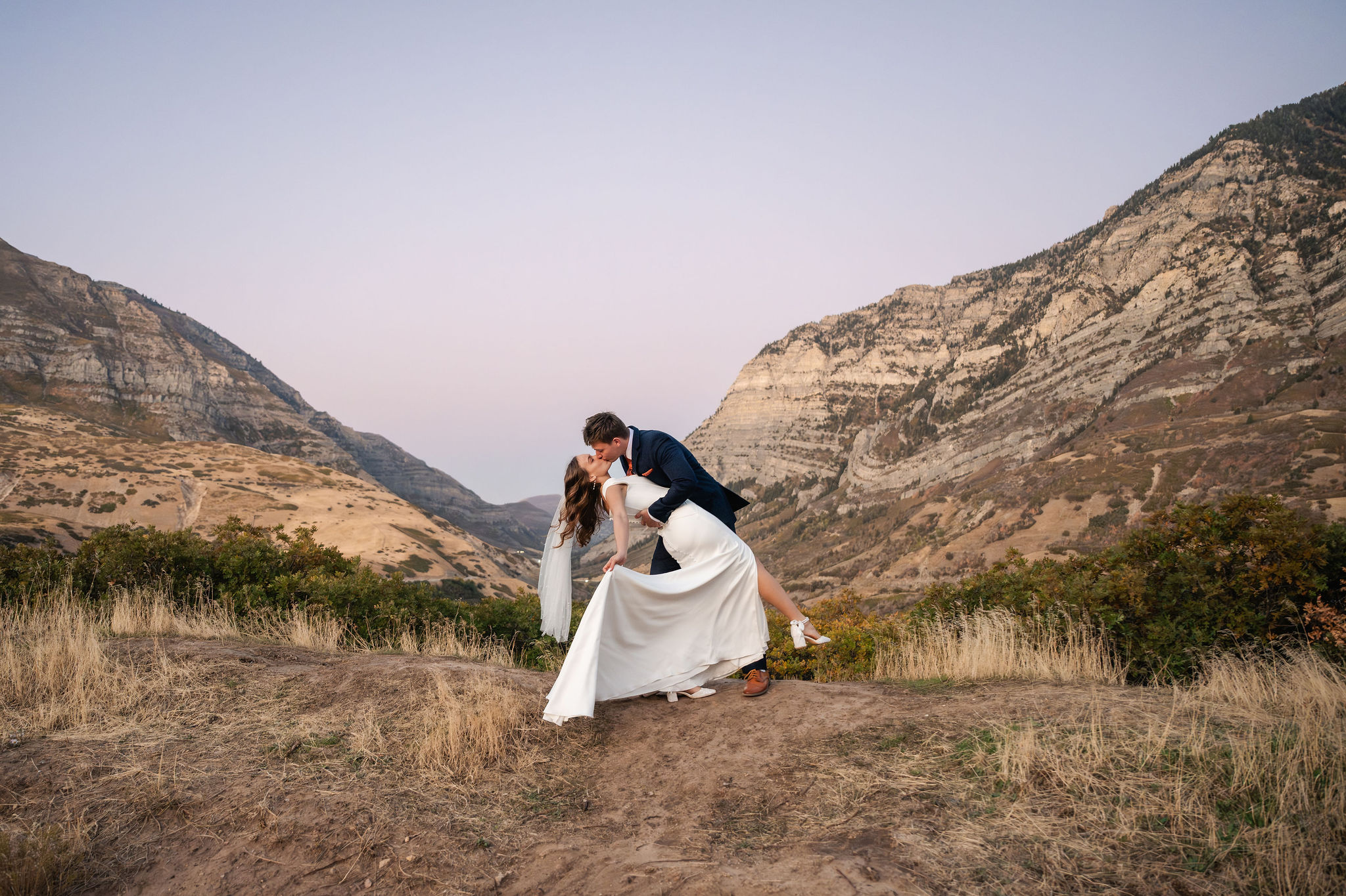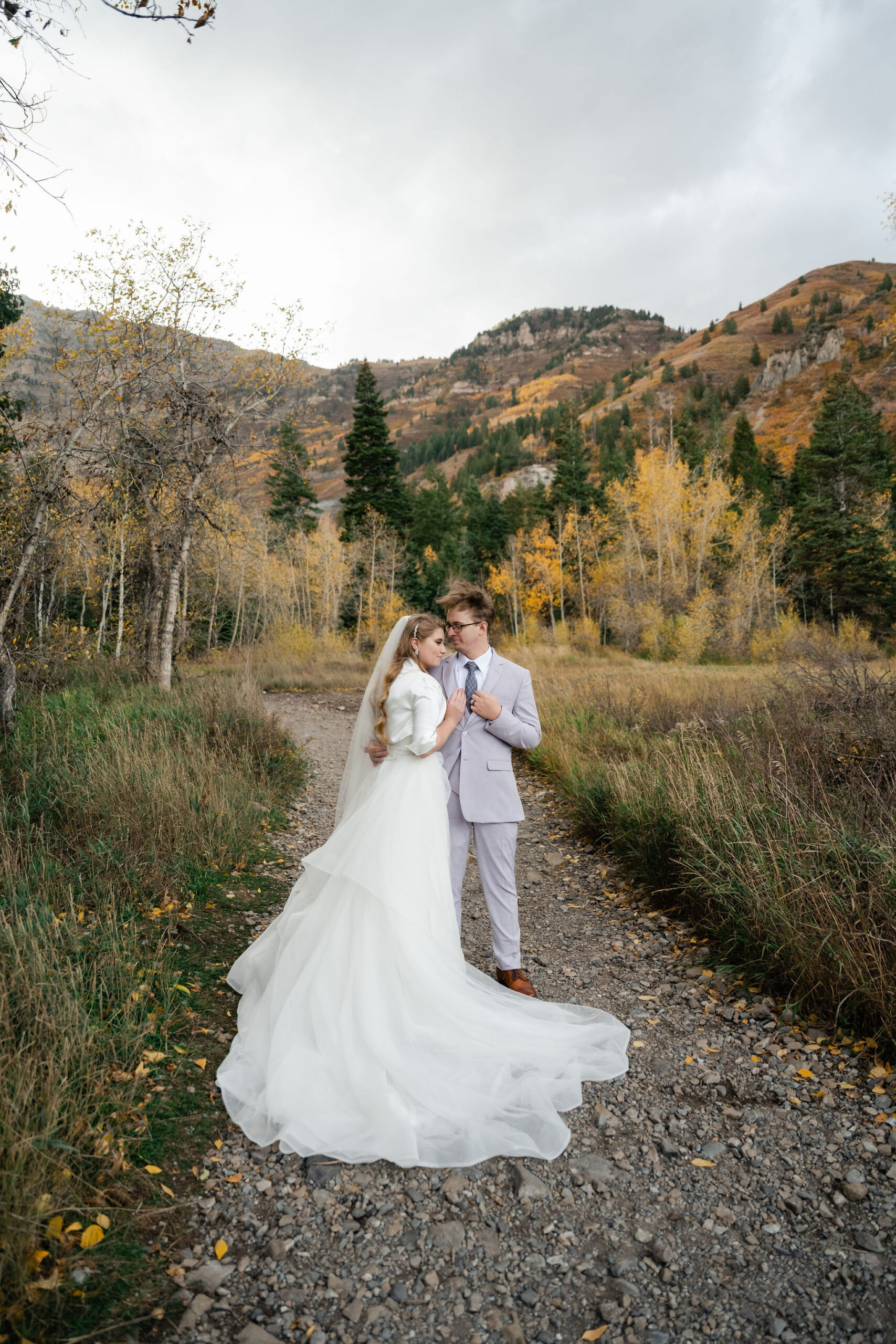 “The mountain views and alpine lake are absolutely stunning. There are so many areas to follow trails to get a deeper forest feel in the aspens as well.” Located above the beloved Tibble Fork Reservoir, Silver Lake in AF is an unbeatable must-visit for anyone who loves Utah’s hiking and nature. But for Kelsey and David’s bridals? Even better.