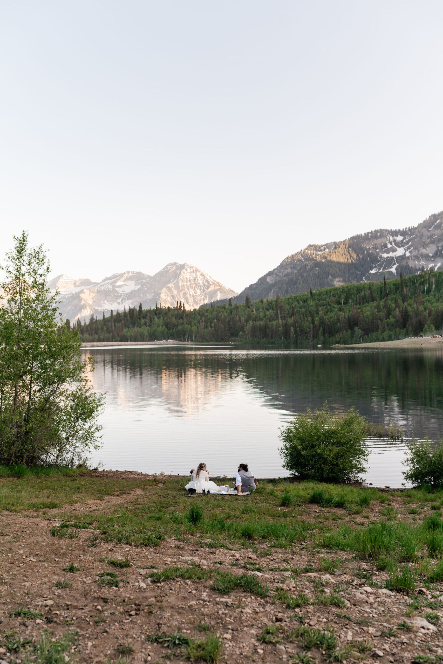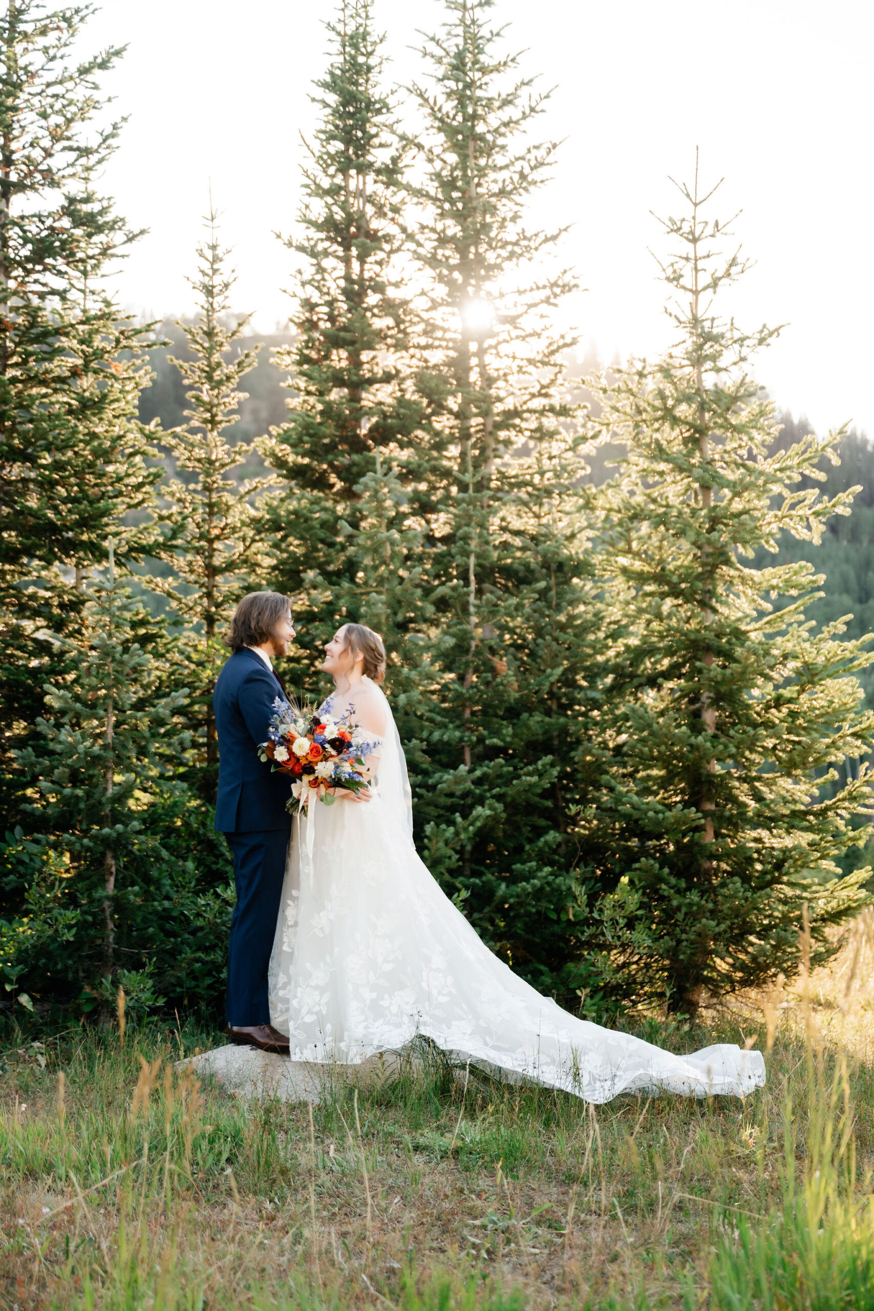 Just like the last one, this Tibble Fork location from Sydnie and Jeremy’s bridals is perfect for amazing lighting and location, and is a local favorite. “It is accessible year-round, is close to parking, has stellar 360-degree mountain views, has lovely pine trees, and a little higher up there are gorgeous trees that change colors for fall. It also has a reservoir for alpine lake vibes as well.”