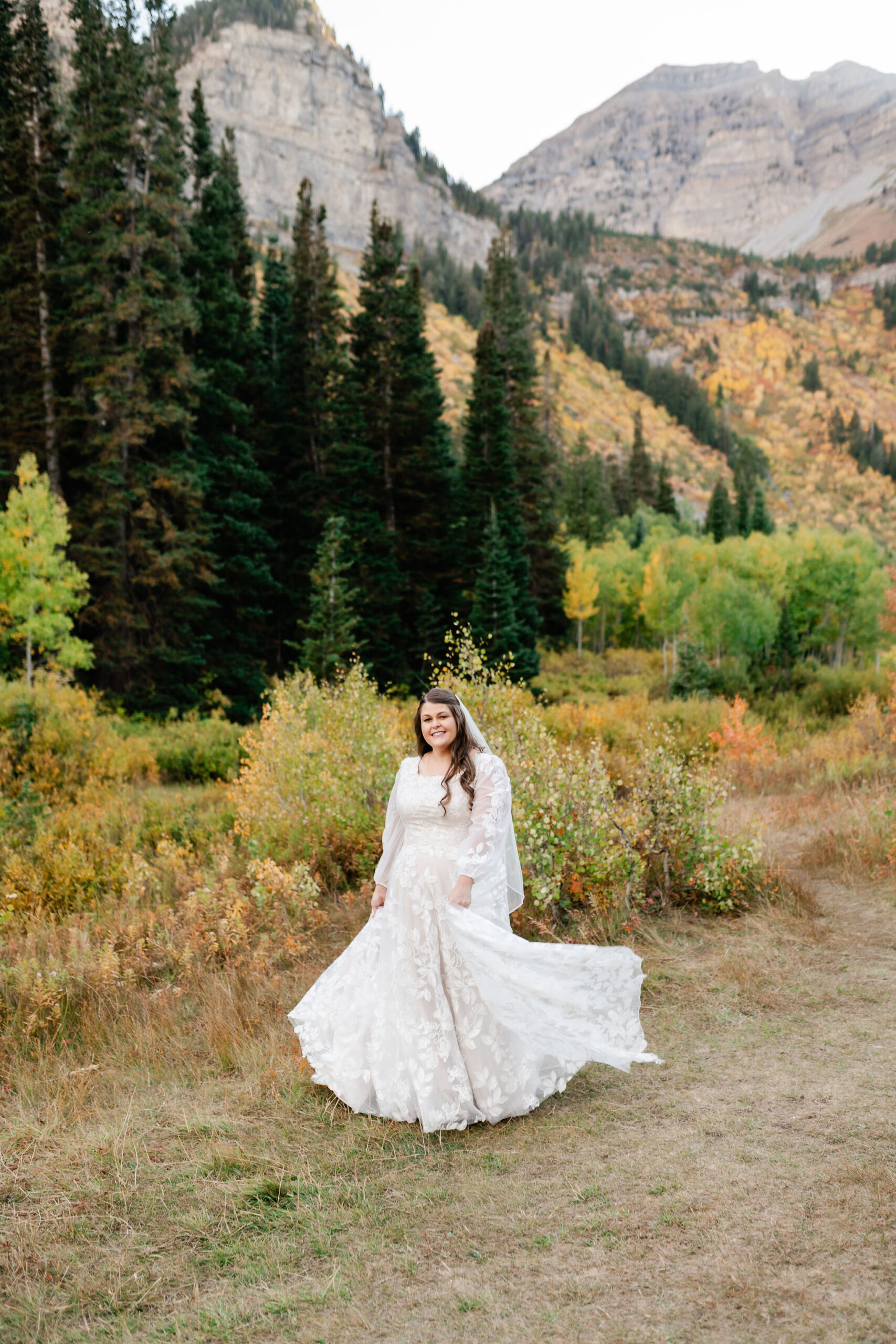 But with the added layer of forest bridals, well, that just makes everything that much better. “Utah has amazing mountains and views. When you are taking such once-in-a-lifetime photos, we are so lucky to be able to drive 15-60 minutes and be in epic scenery that feels breathtaking, ethereal, and as once-in-a-lifetime as your wedding.”