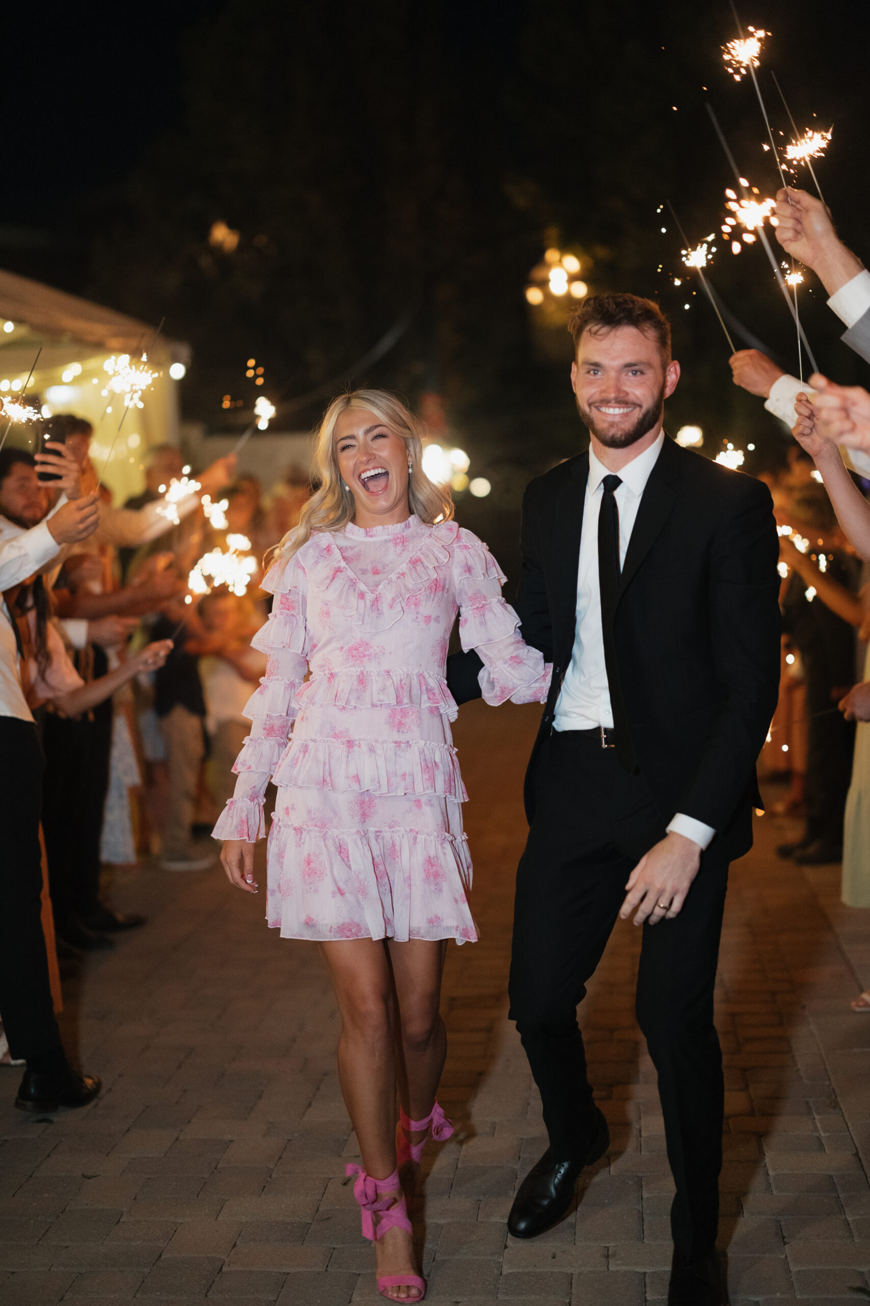 Alli says, โMy favorite part of the 2025 magazine was the Run Away With Me feature! Their wedding was such a stunning evening, including the mini golf at Siempre for their rehearsal dinner, the vibrant pinks, the customized pillows and signs, and the night ending with fireworks!โ