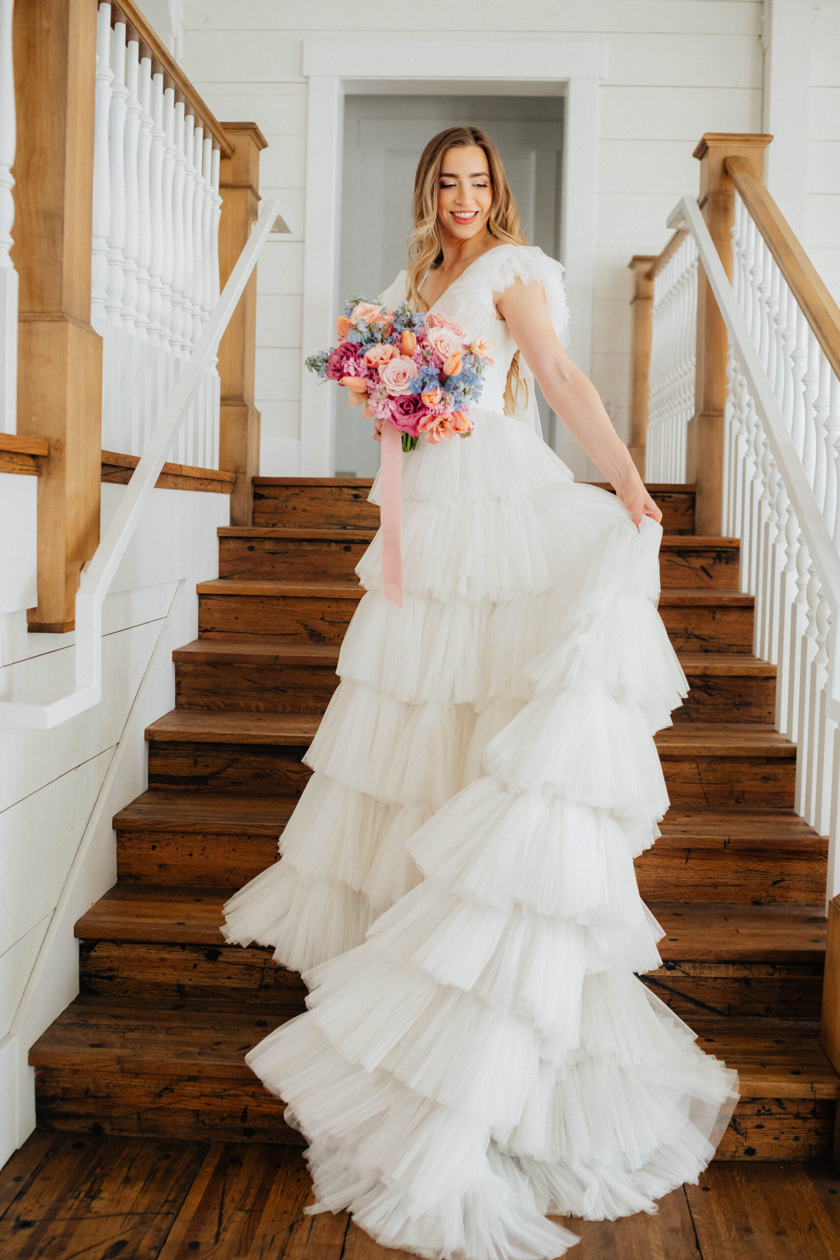 This ethereal beauty is the perfect epitome of whimsical softness with a hint of playfulness. Those layers look soft enough to sleep in. Anyone in the mood to frolic through a field?