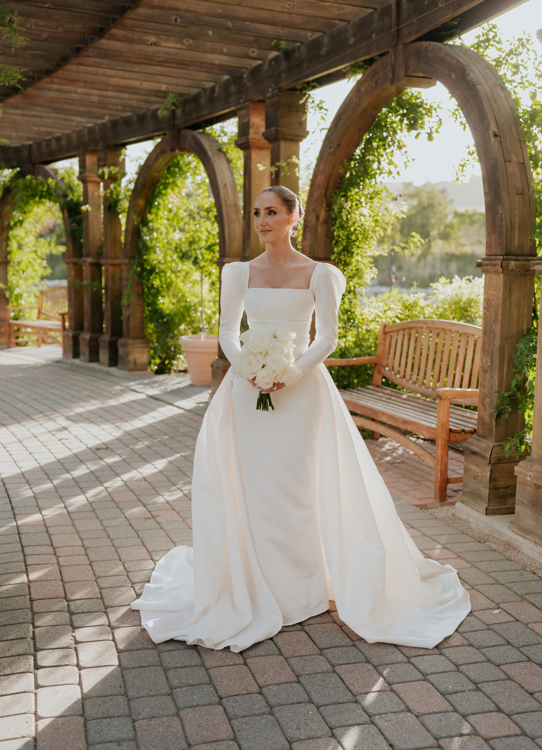 We know, itโs incredible. This bride took texture to a whole new level of tantalizing. Her gown is a dynamic movement of eye-catching rosettes and a perfectly structured bodice.