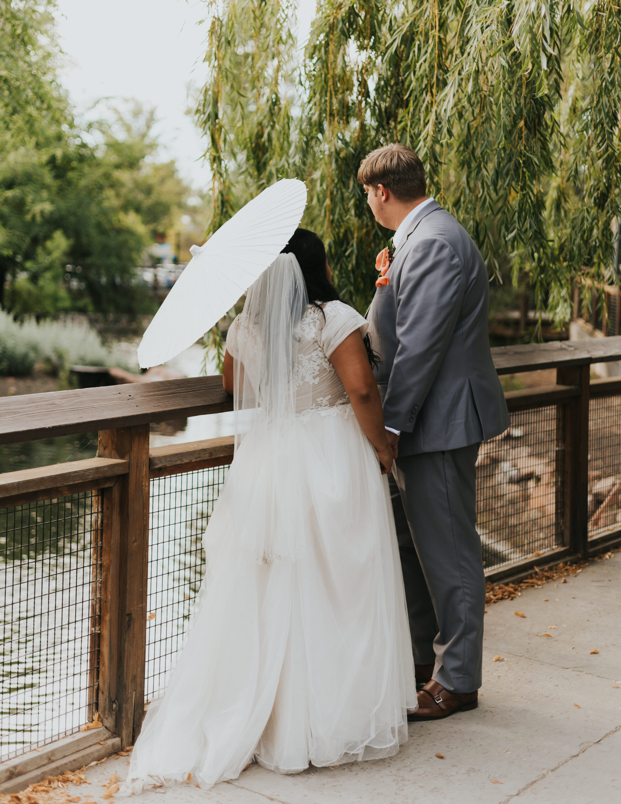 You know those bridges where people place a lock that symbolizes their love? This one is even better: theyโre locking it up with their vows! And this parasol adds that extra touch of romance.