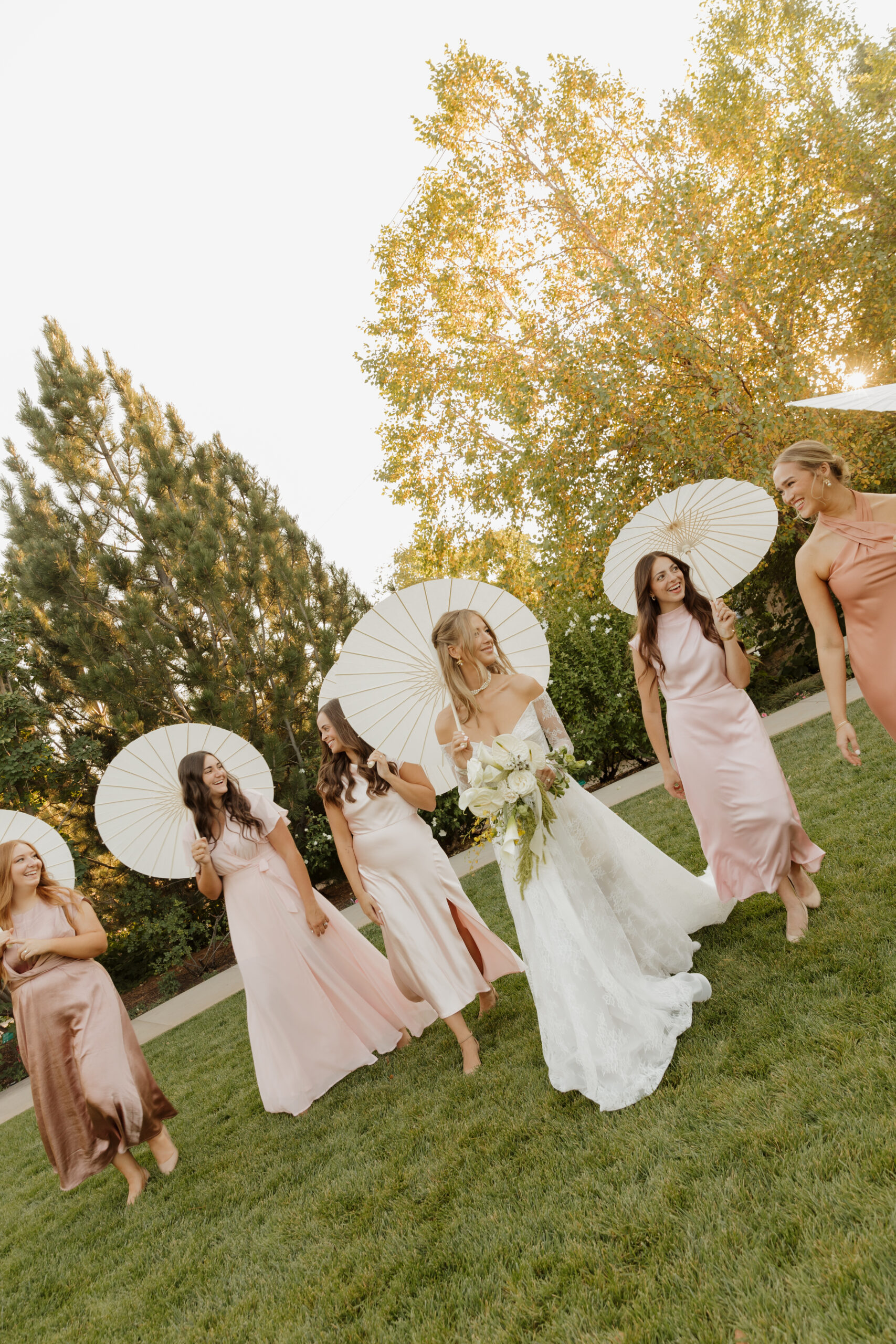 We wish we could convey to you how much we love this shot. The colors, the dresses, the sunset in the backgroundโฆand of course, those stunning parasols.