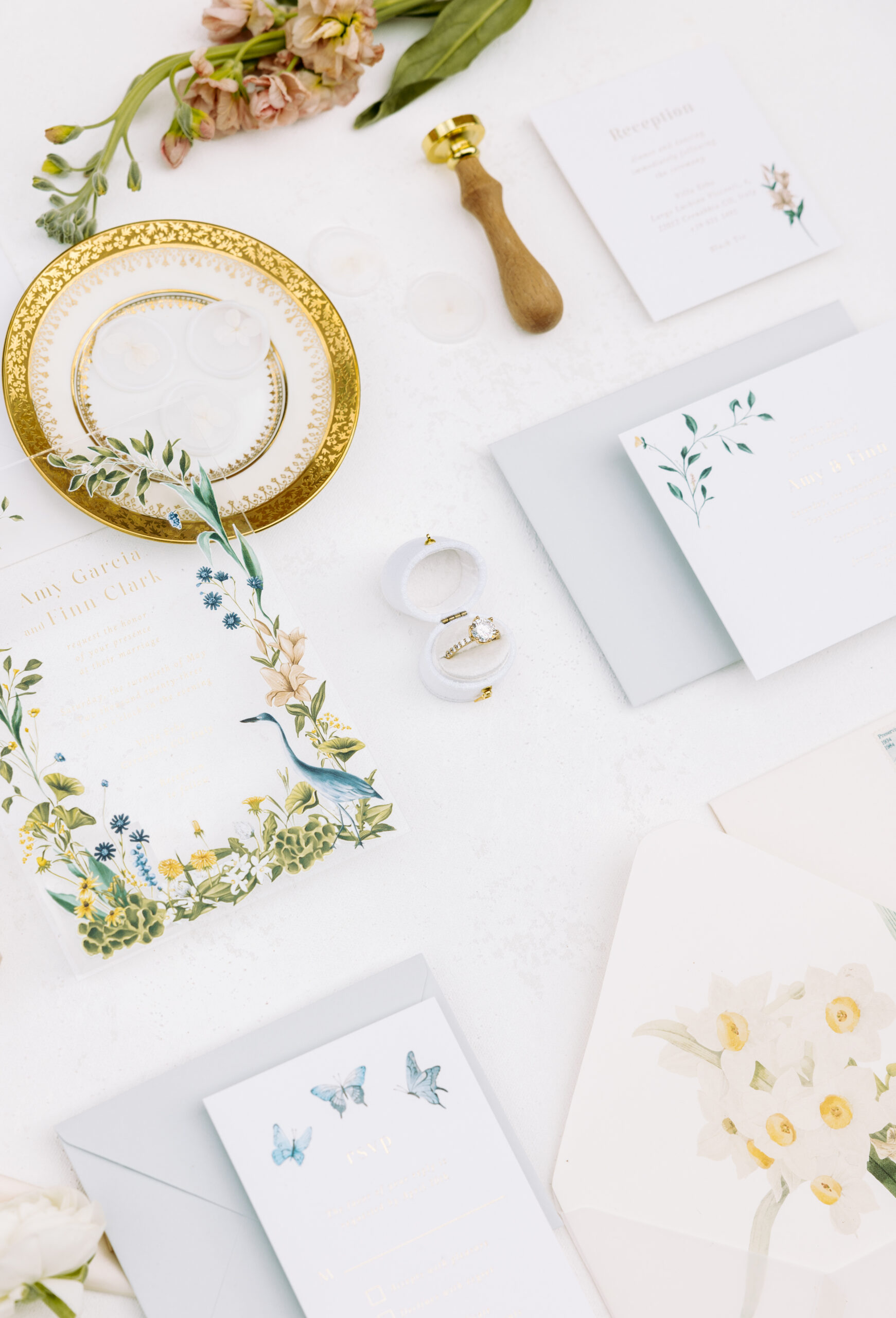 This acrylic invite is simply perfect, no notes. With every floral detail, right down to the pressed flowers in the seal, weโll be dreaming about it every night.