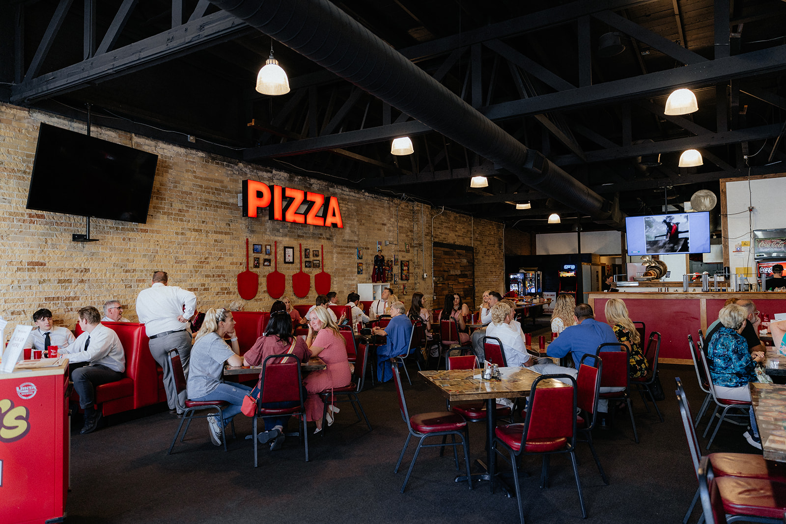 From vintage movie posters and arcade-era details to a laid-back, high-energy atmosphere, the space offers a true blast from the past while keeping quality front and center. Perfect for rehearsal dinners, late-night bites, or full wedding catering, this pizzeria provides a crowd-pleasing alternative to traditional catering—without sacrificing craftsmanship or flavor.