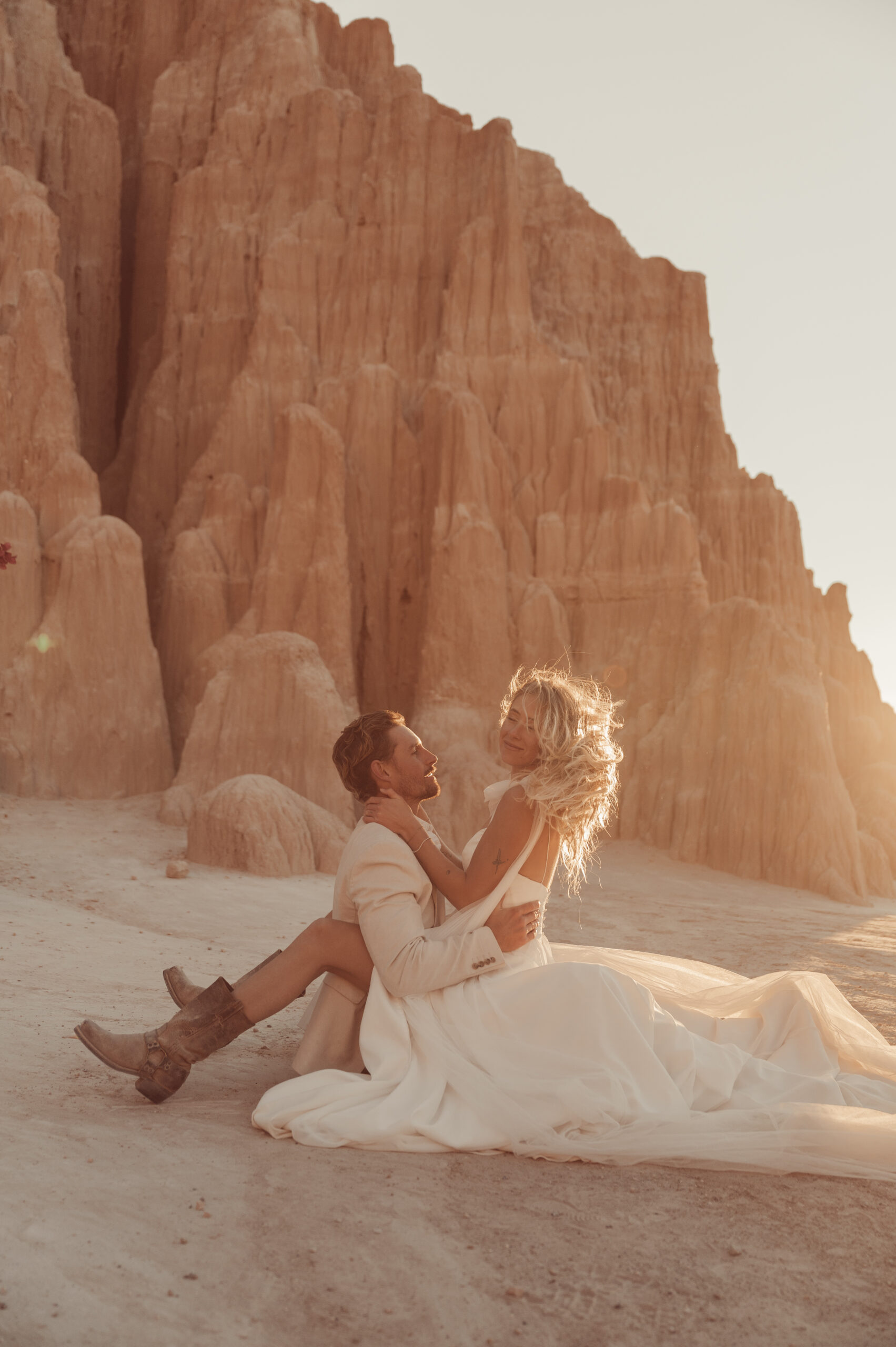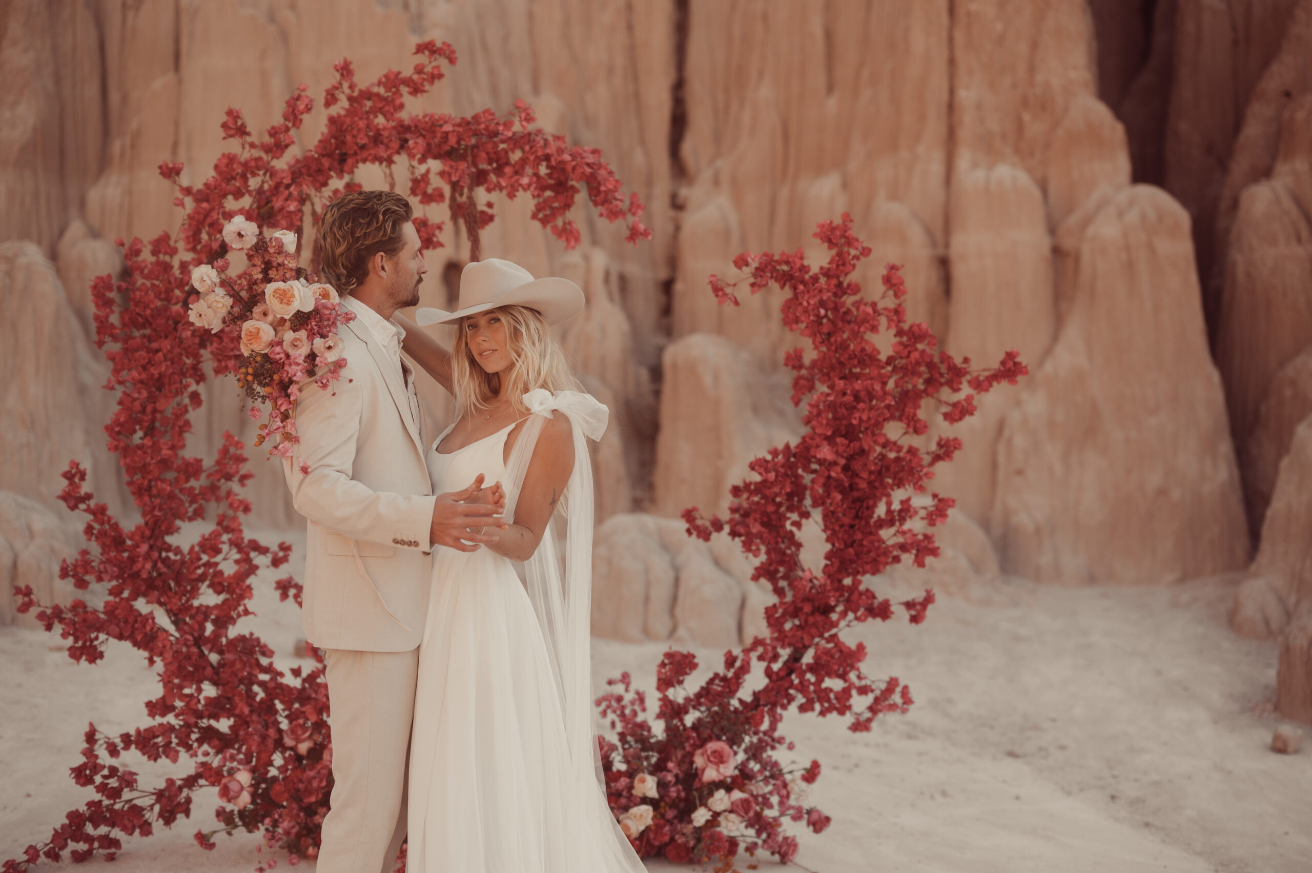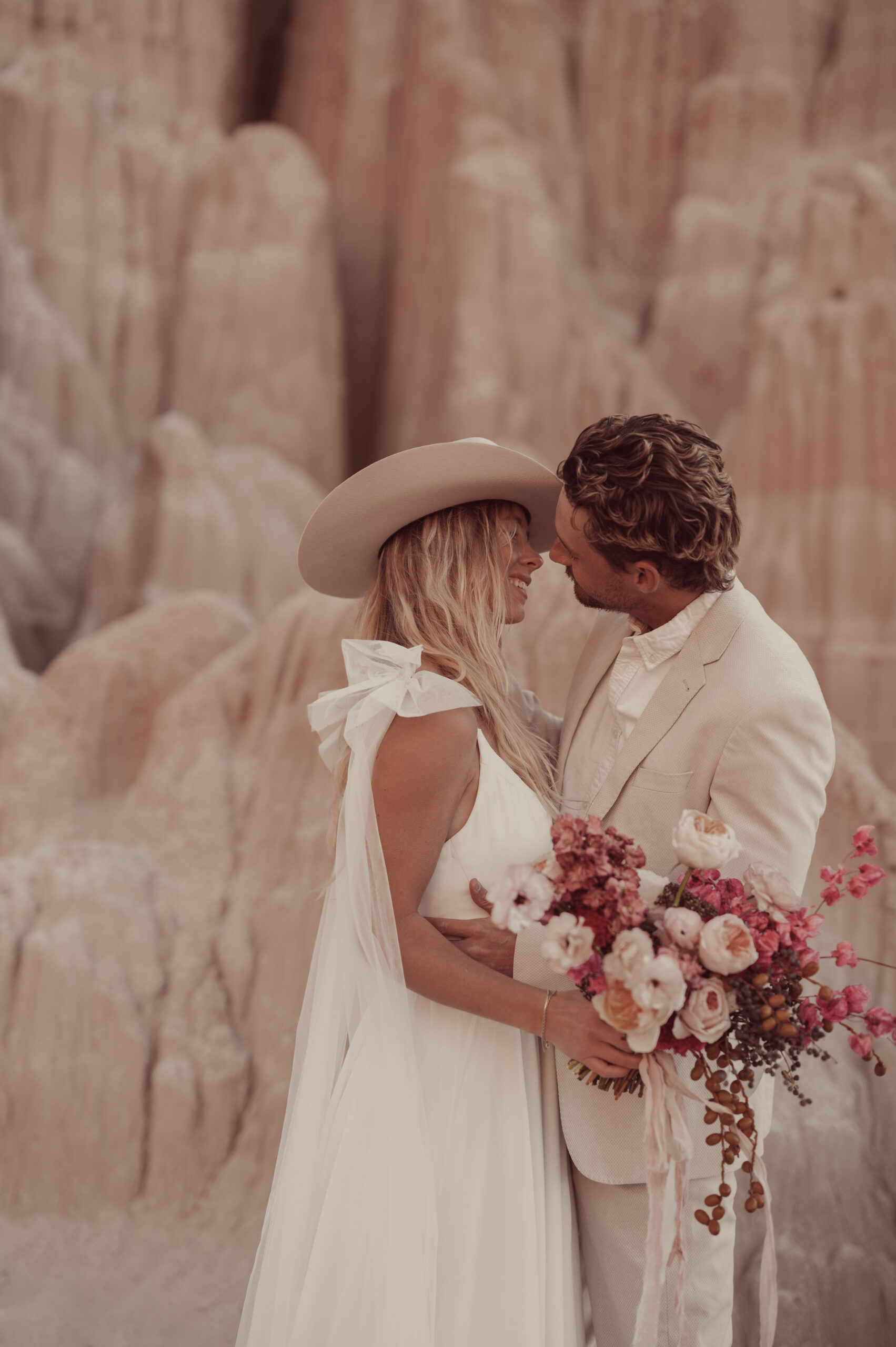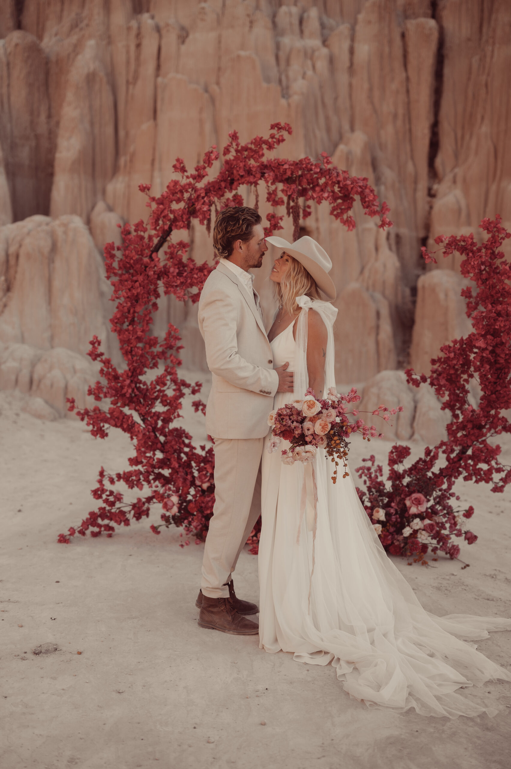 There’s no better place to really touch the earth and break it in your hands than Cathedral Gorge. This wild, unruly couple perfectly combines country chic with real romance, and we simply cannot get over the rich, luscious shades of pink from these flowers and stationery from Peach Wolfe. Olive & Sage Floral and Wild Jo Florals are just that: wild in the best way.