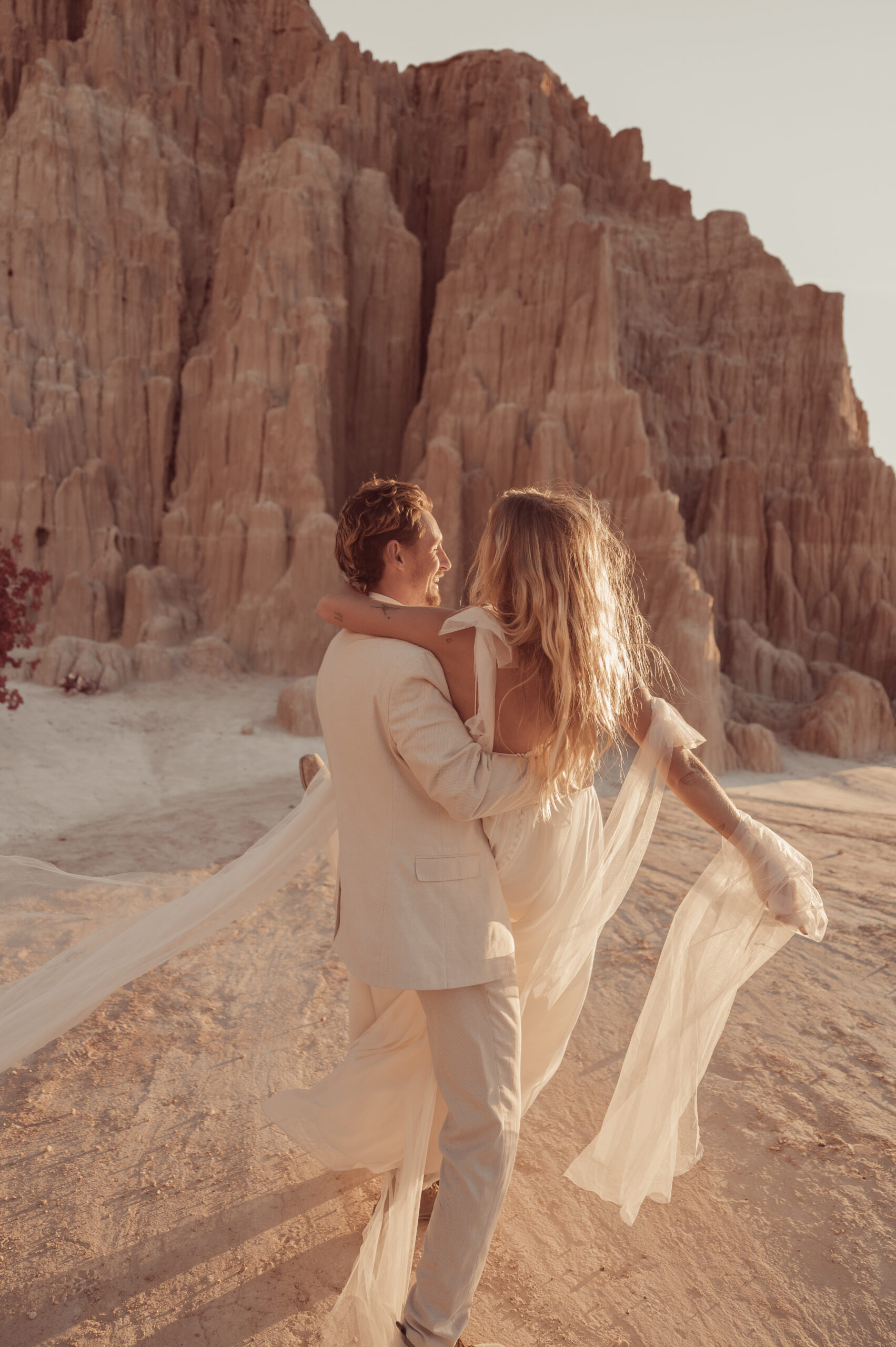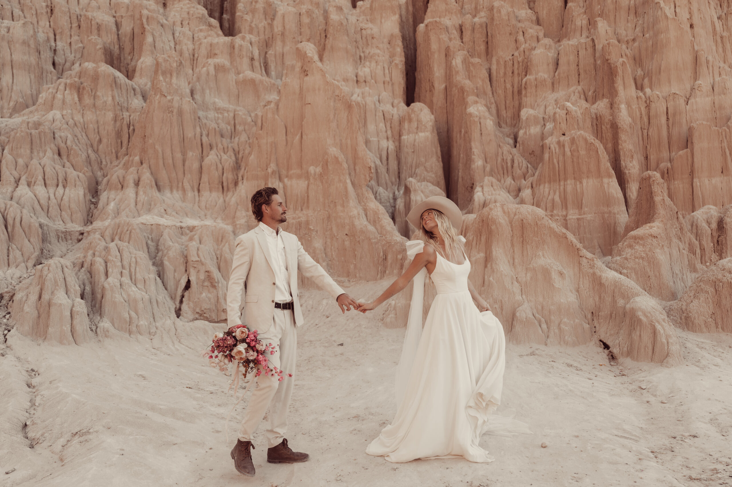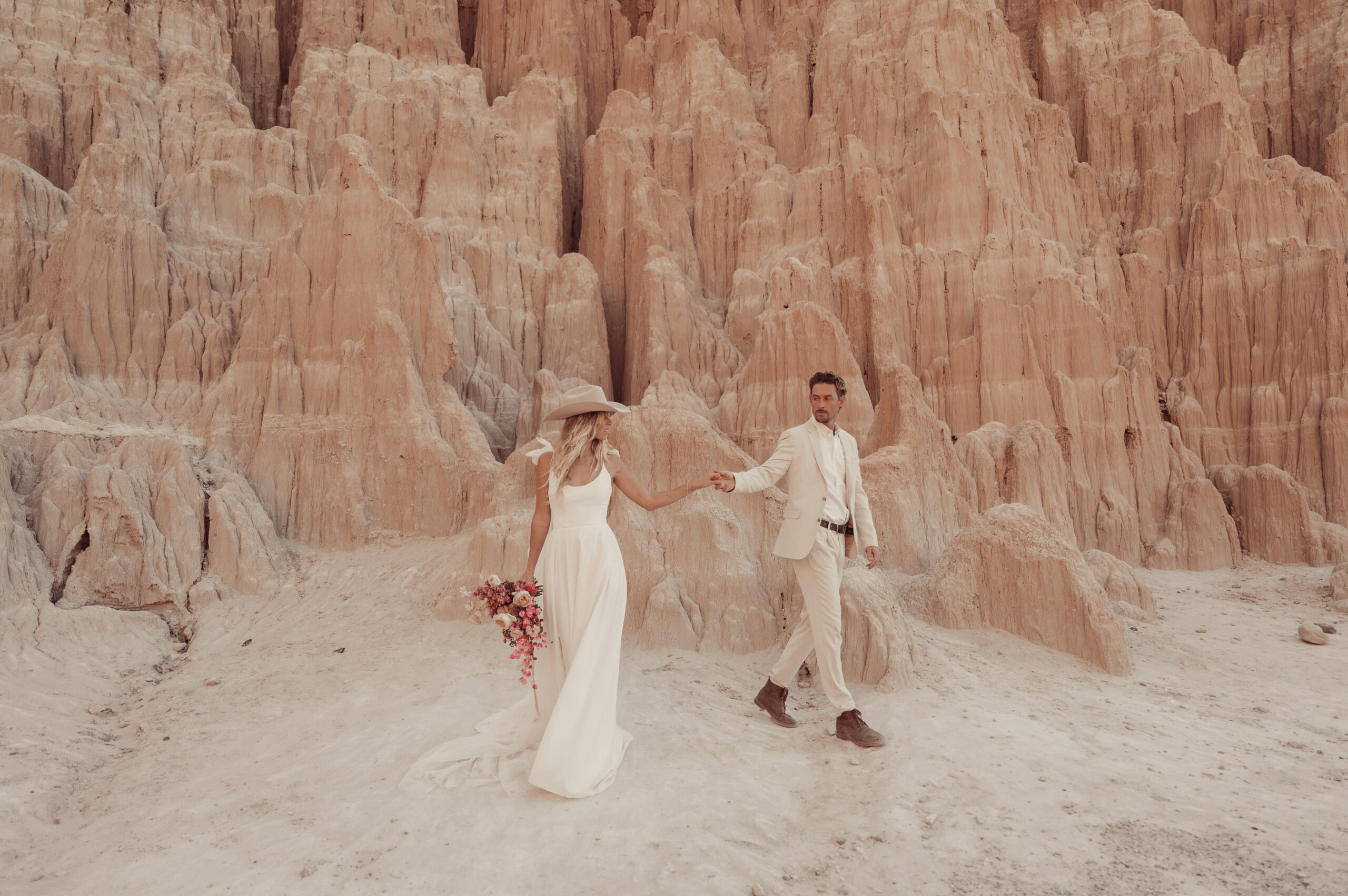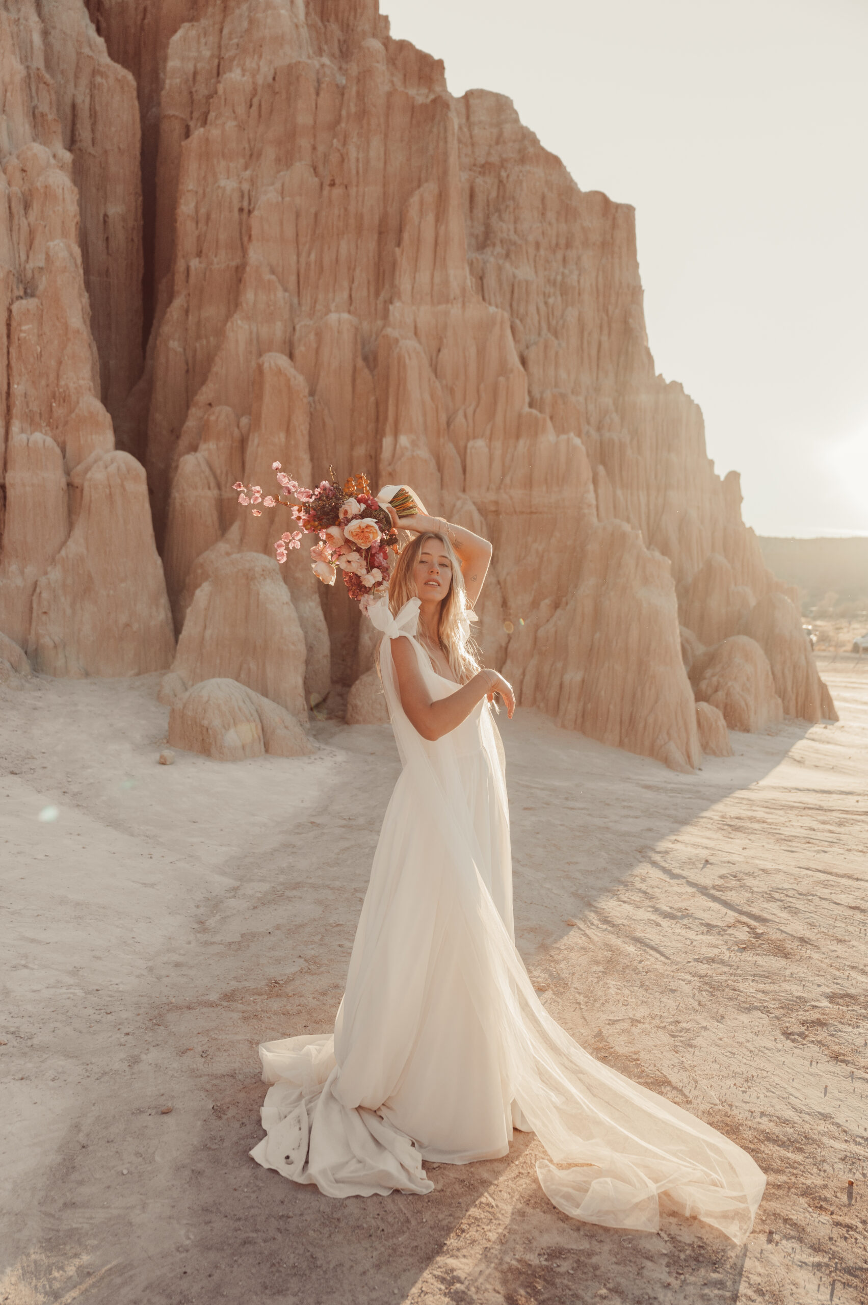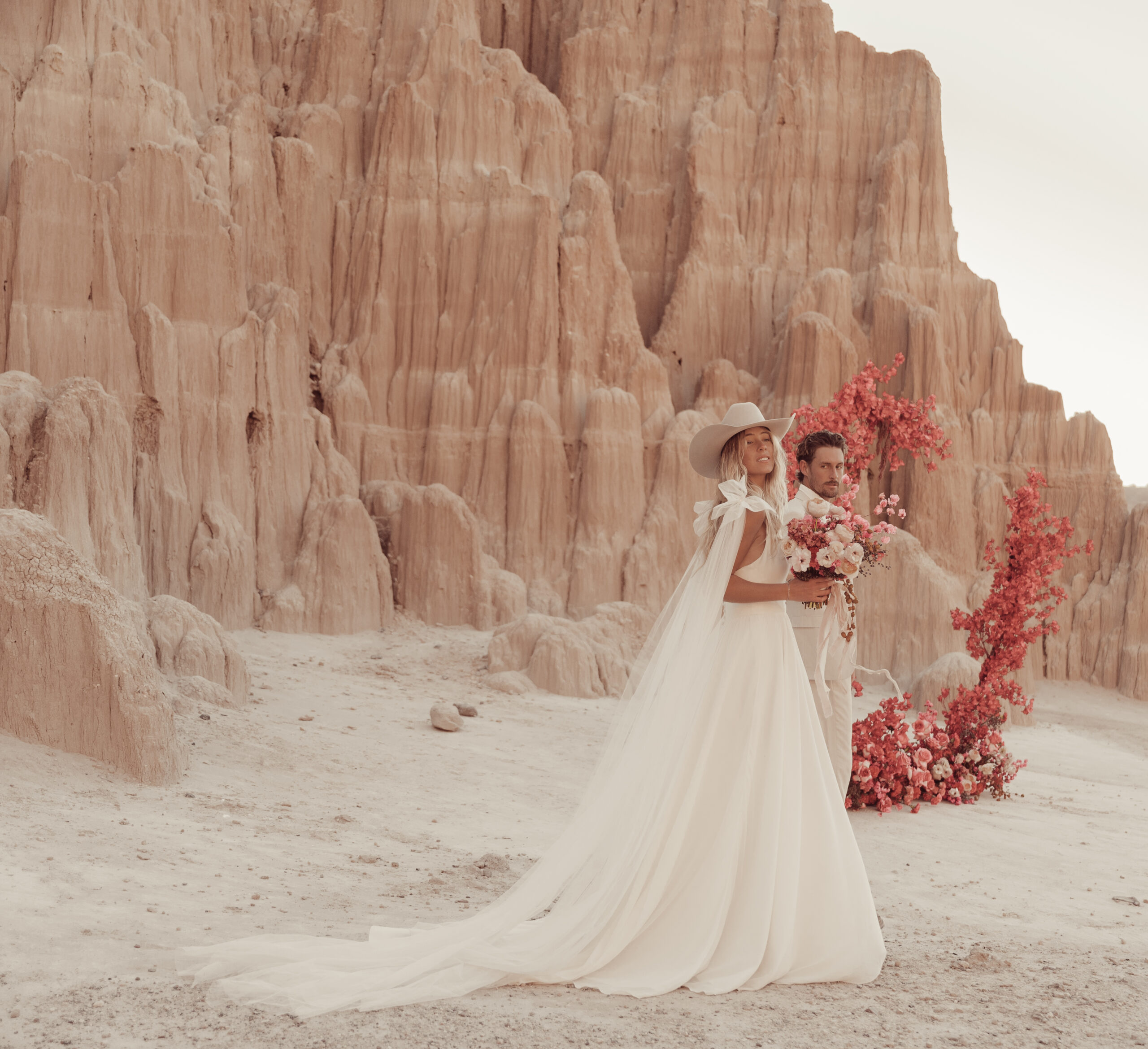 There’s no better place to really touch the earth and break it in your hands than Cathedral Gorge. This wild, unruly couple perfectly combines country chic with real romance, and we simply cannot get over the rich, luscious shades of pink from these flowers and stationery from Peach Wolfe. Olive & Sage Floral and Wild Jo Florals are just that: wild in the best way.