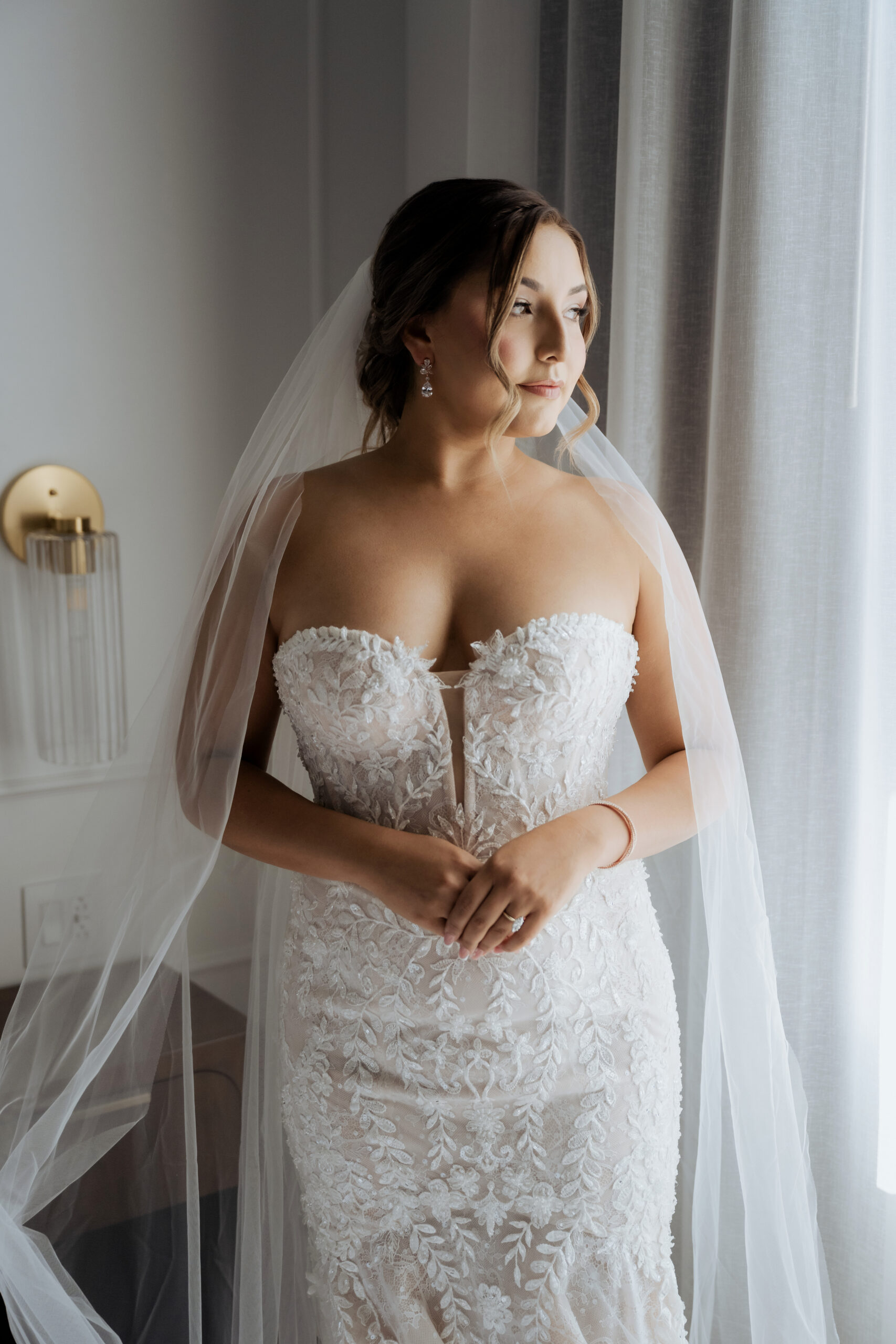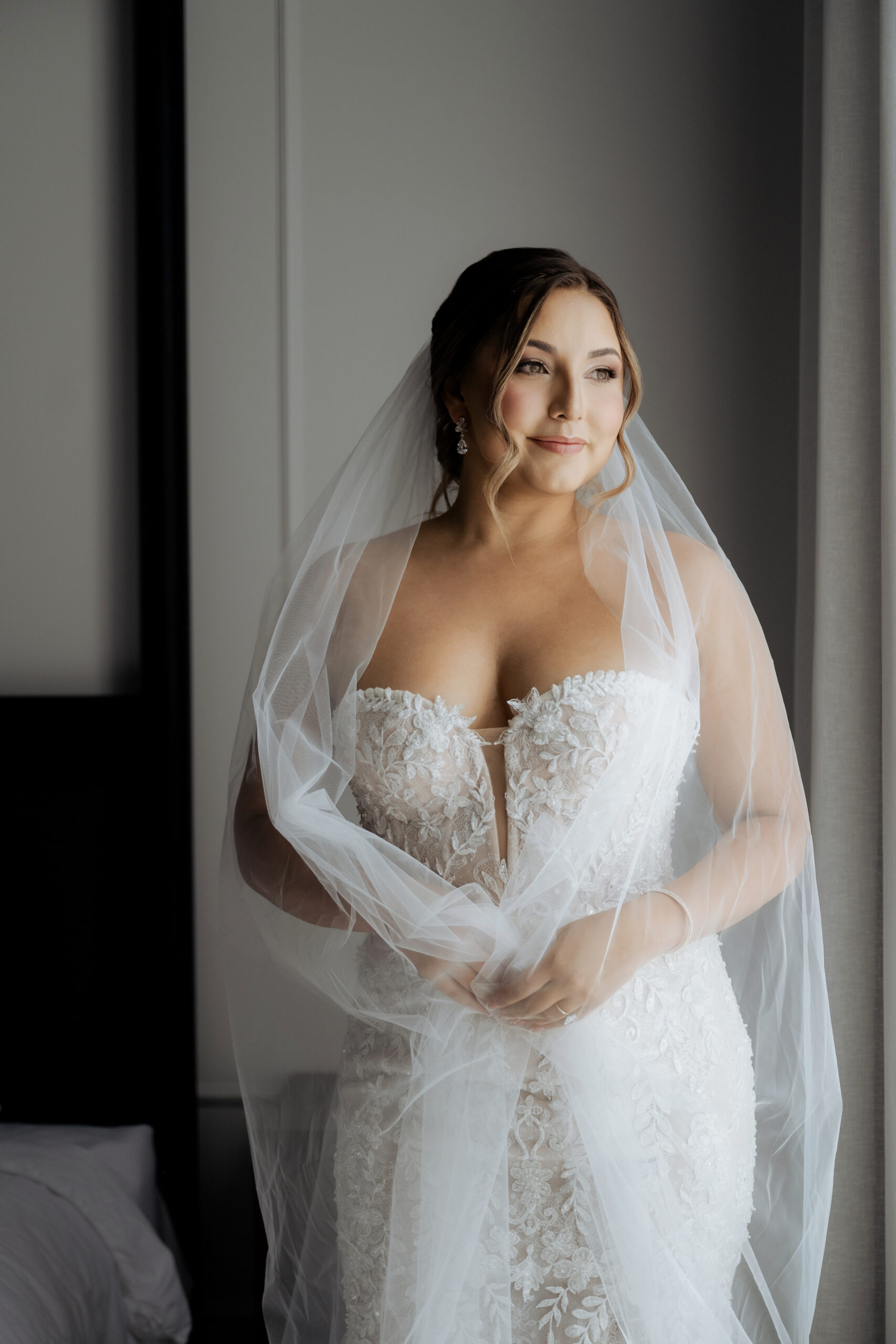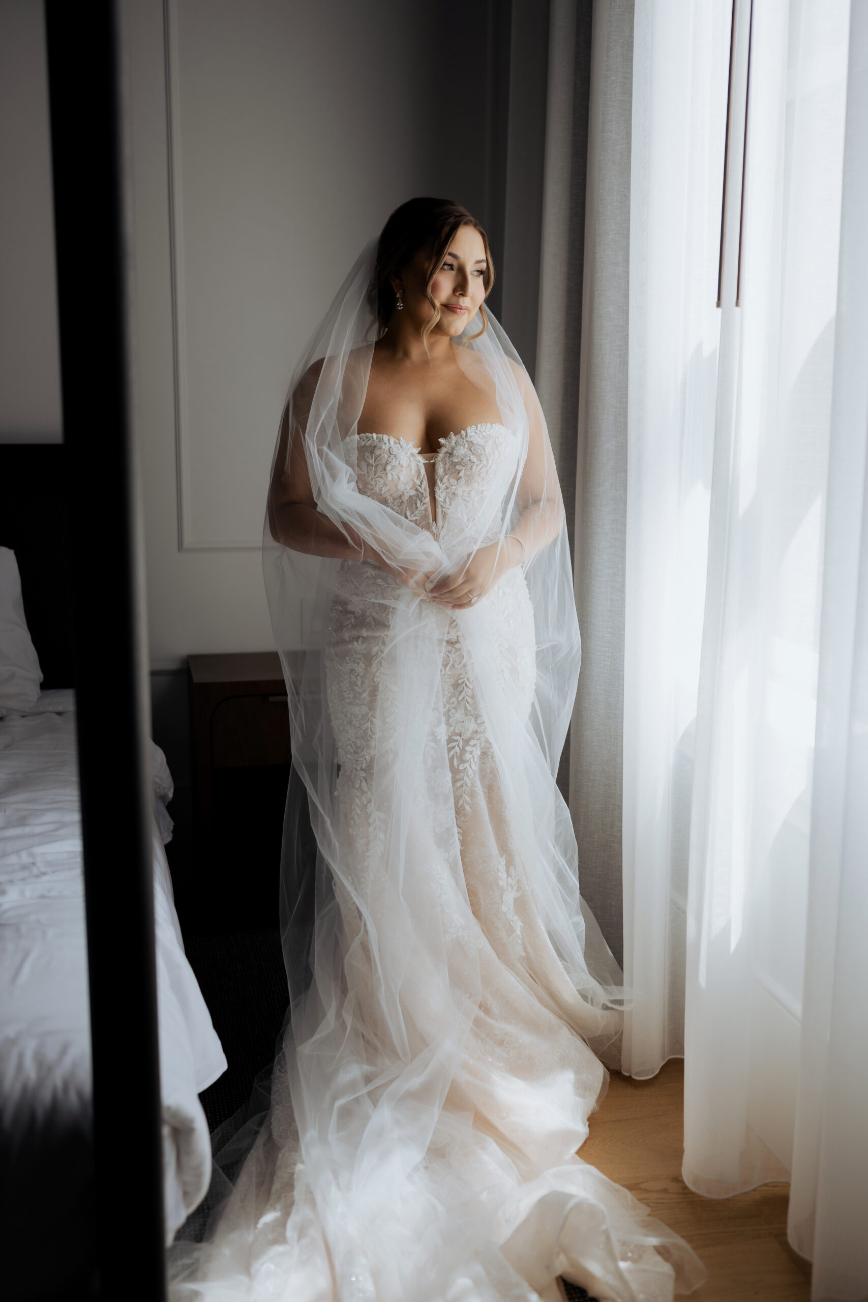 “Becca and her second shooter, Nicole, took me to this little room in our hotel. It’s super cool and it had perfect lighting, with the yellow couch. And we basically just had fun and did a little photo shoot there, which I wasn’t expecting. I didn’t think they were going to do anything like that, but I think we were just so excited about the dress and how everything came together. I was on cloud nine.”