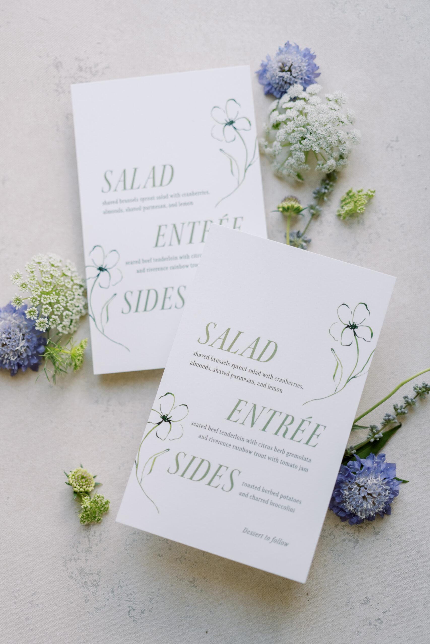 “A priority for me was the continuity of the different elements. I wanted everything to feel like one. I wanted it to feel not overly done, but still simple enough that no one else would notice it. I was very hands-on on that. The overall look and feel, and the flowers and paper goods, tied for top priority.”