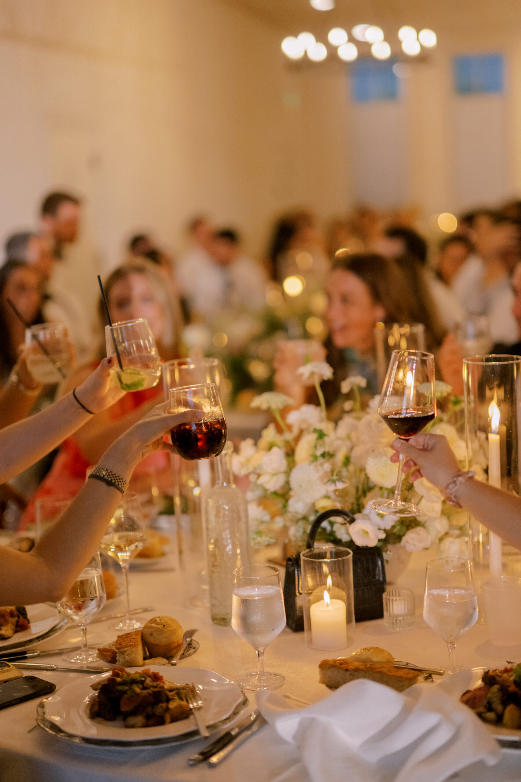 “From a design perspective, we wanted every guest to feel included in the celebration. We created branding that carried across both our welcome party and the wedding itself, from custom matchbooks to napkins and floral-inspired details. Every guest received a welcome bag in a custom tote that read “With love, from Park City,” filled with snacks we love. We loved that the totes could be reused, making them both personal and sustainable. For the wedding itself, we also had playful touches like flower pot escort cards to guide guests to their tables.”