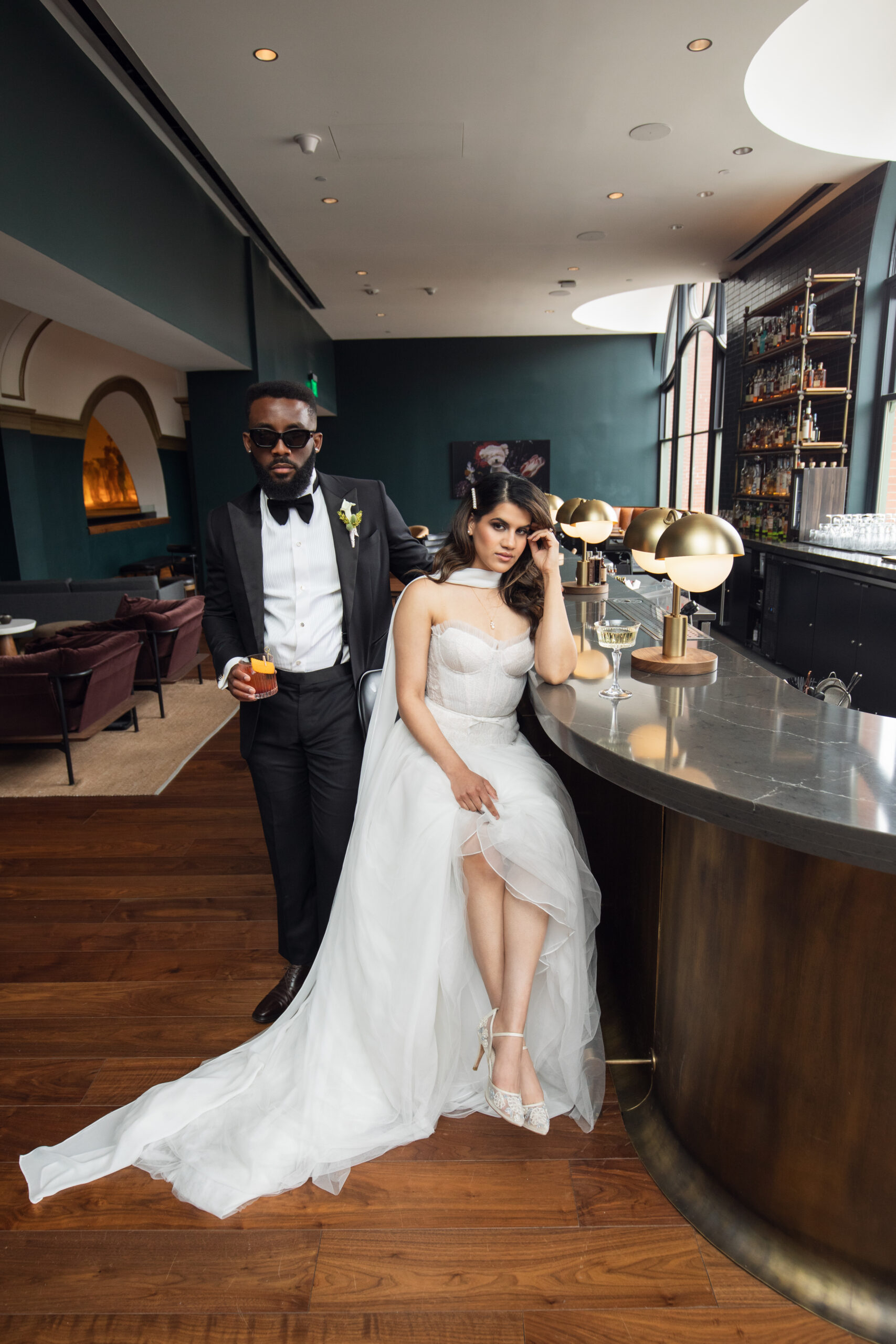 And who better to capture the intrigue of a turn-of-the-century love story than our bride and groom, Jennica and Eddy? Jennica’s warm, inviting smile is the perfect match for Eddy’s suave smirk and sunglasses. It’s giving high fashion meets vintage romance.