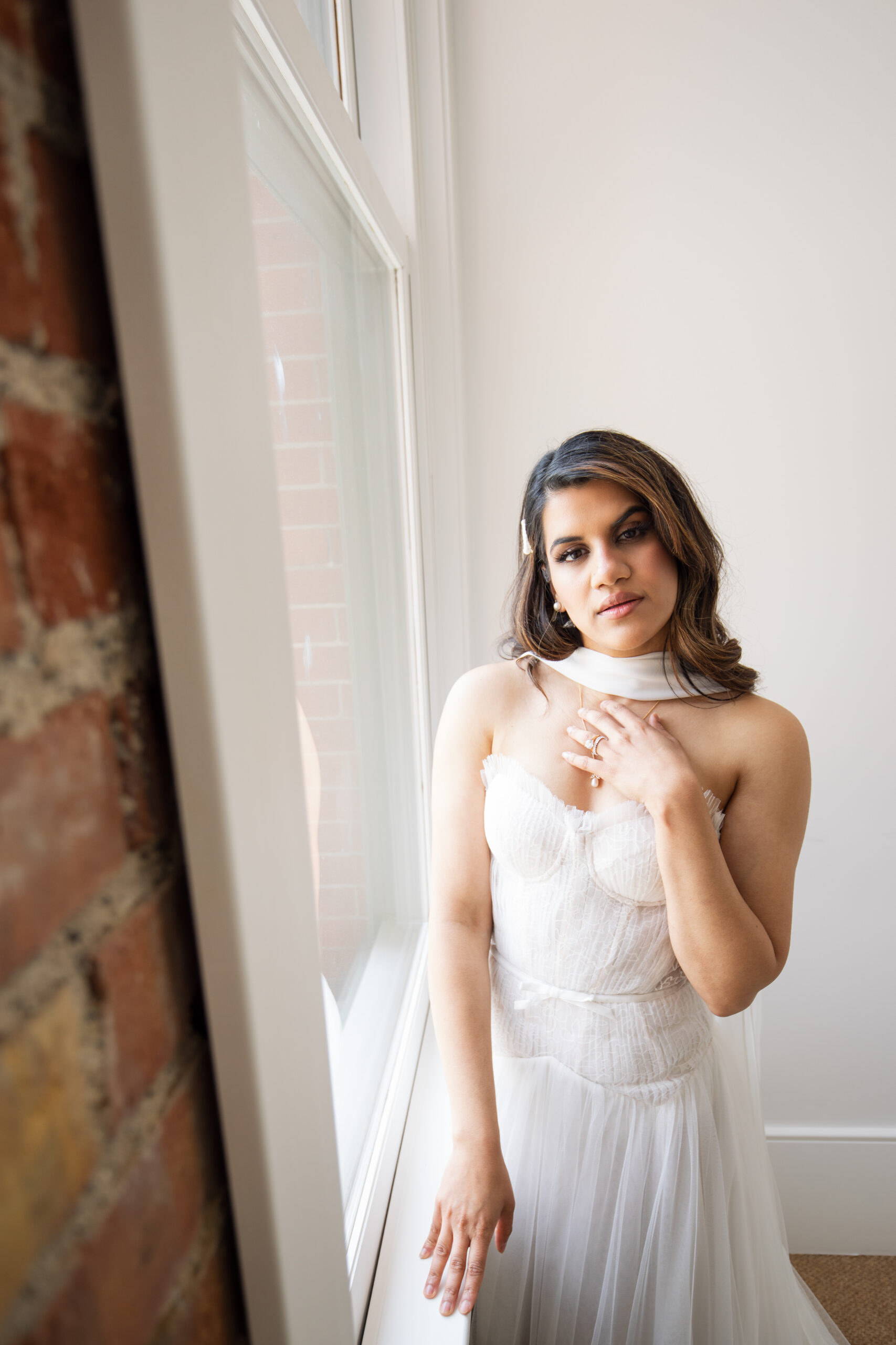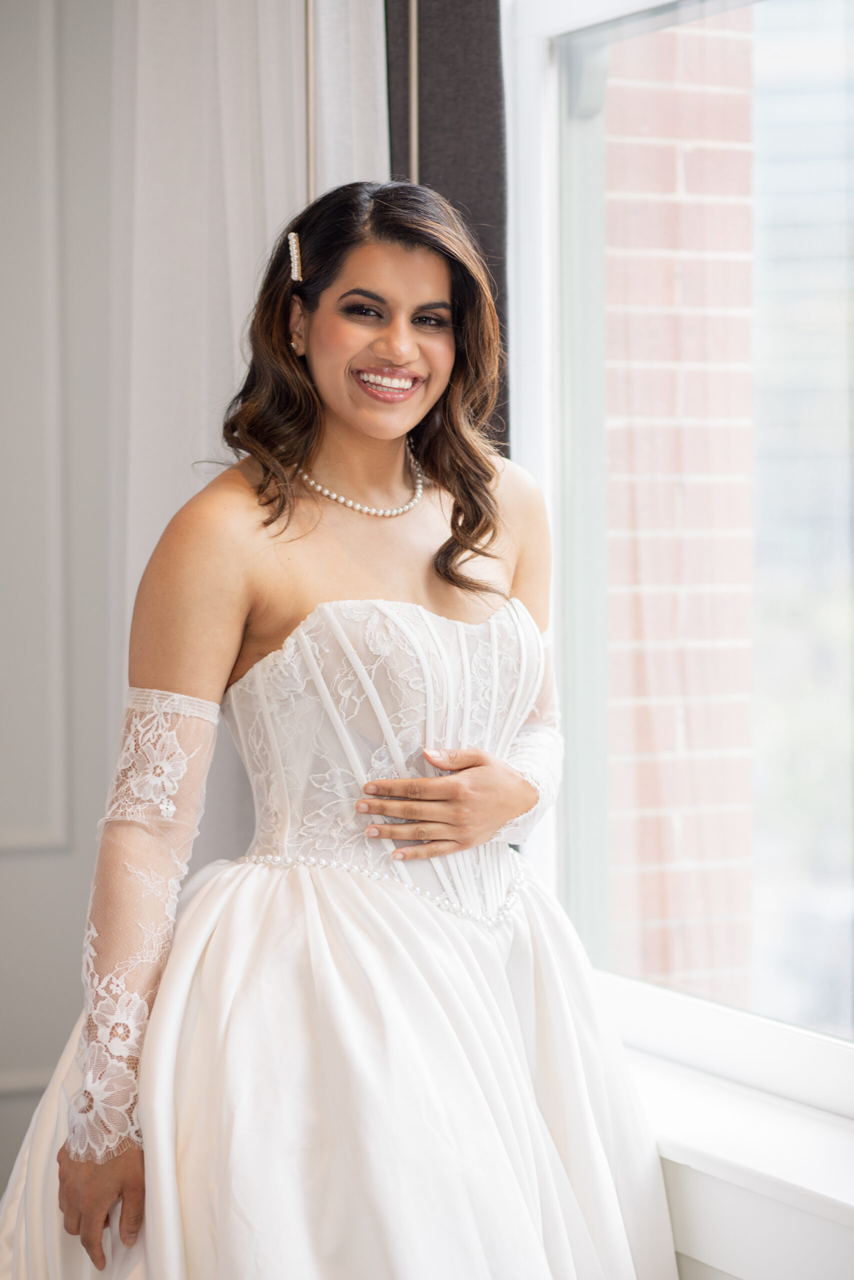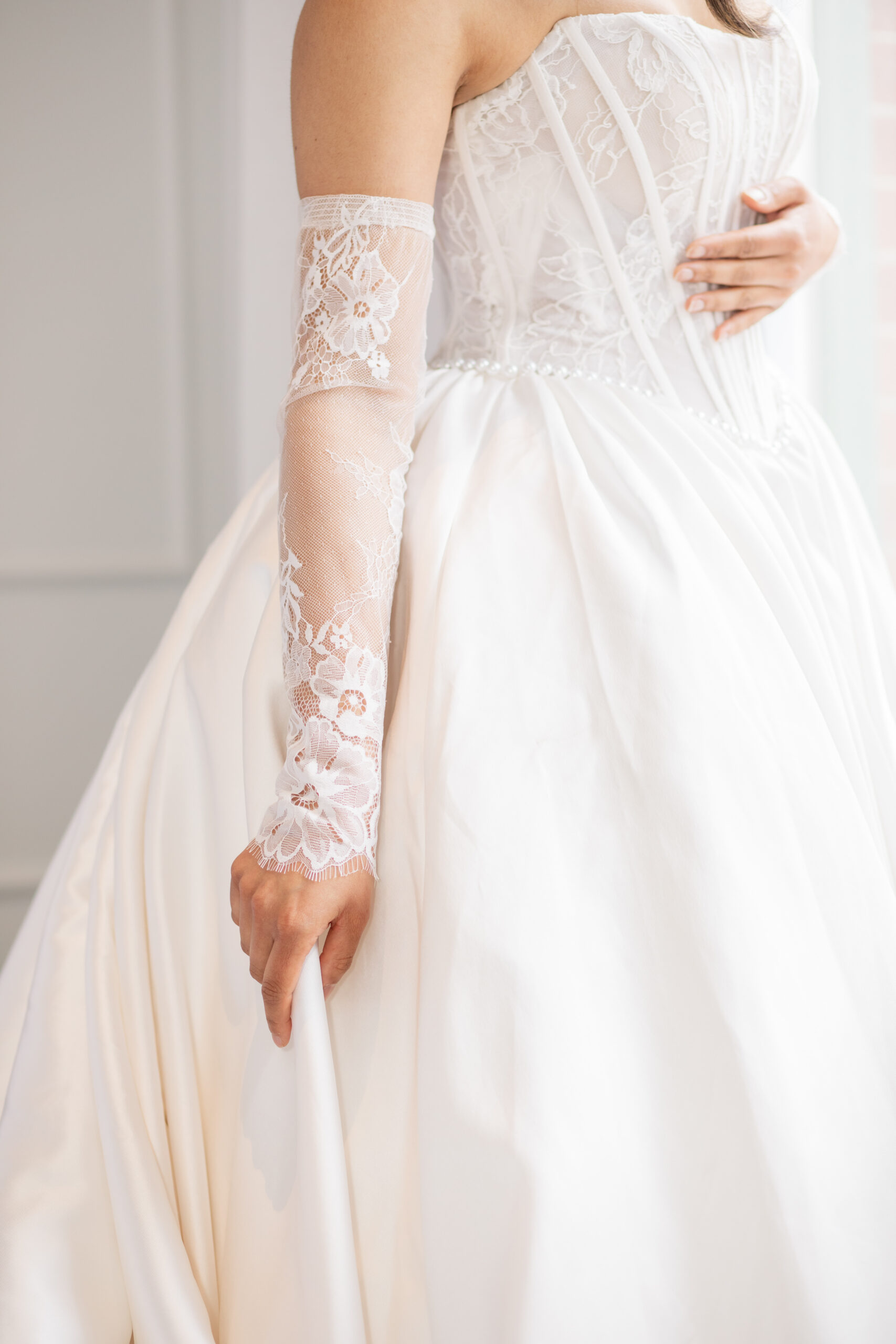 But what’s a vintage bride without her wedding dress and jewelry? Both of our old-timey brides’ looks from Fantasy Bridal perfectly capture the twentieth-century aesthetic; the corset lace top with matching gloves and a massive satin ballgown with layer upon layer of drama really transports us back to a time when these images would have been captured in sepia tones and black and white.