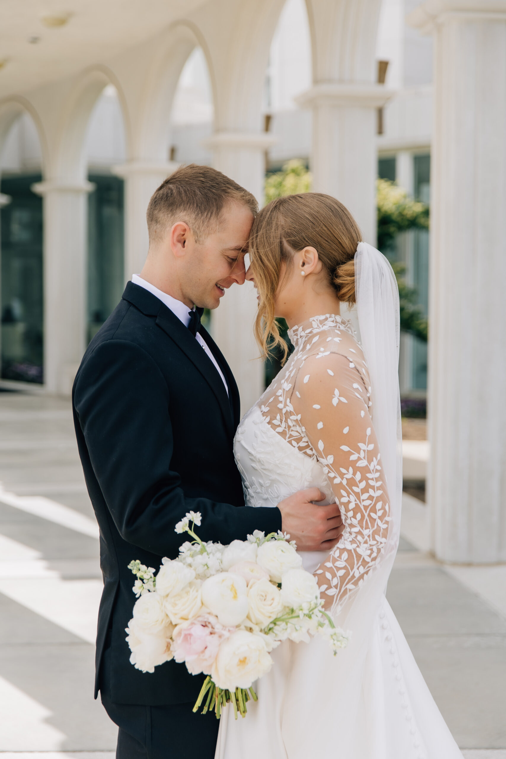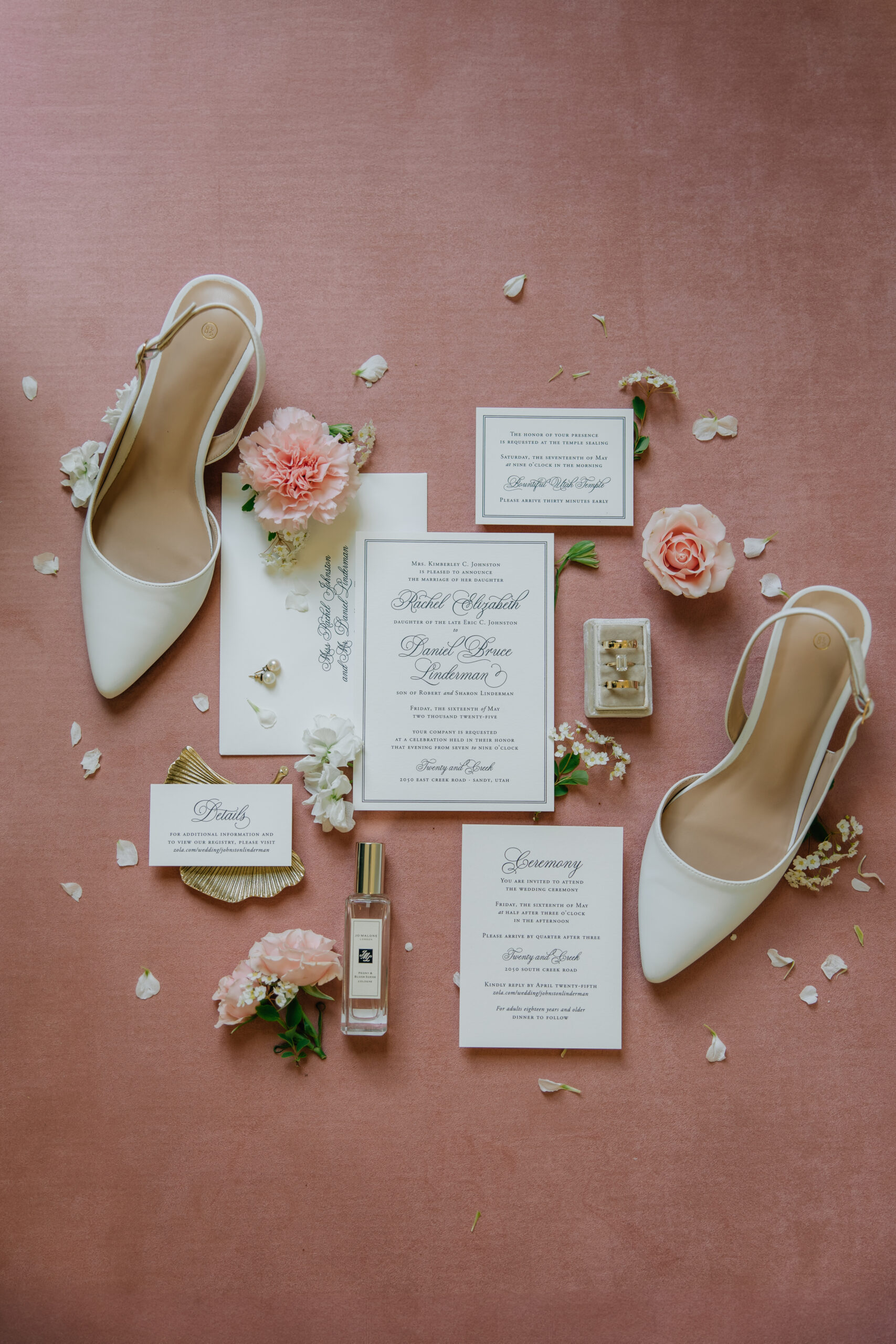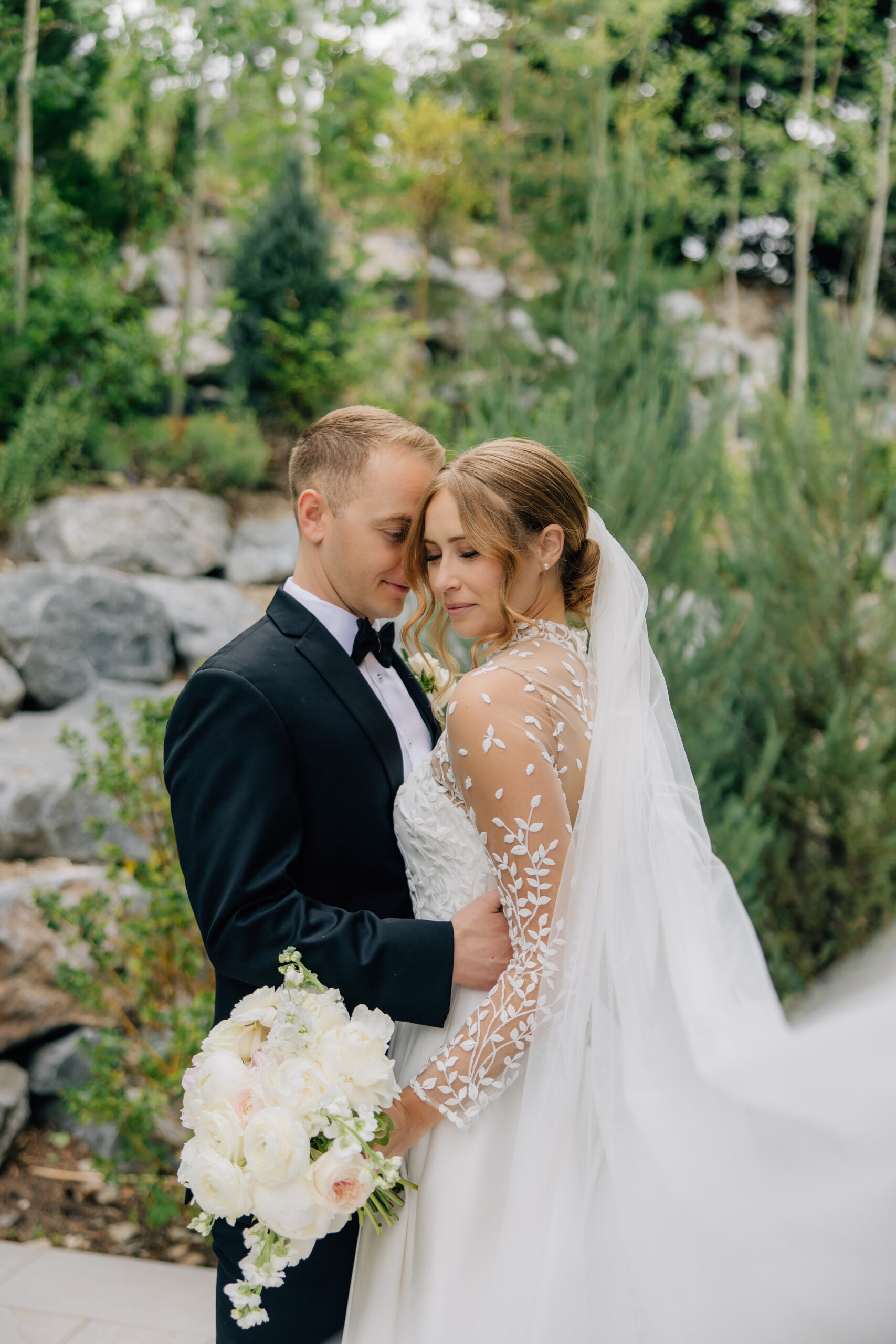 After Rachel and Dan got engaged, Rachel originally wanted an outdoor, elegant Utah spring wedding, but knew the weather in Utah can be unpredictable in May, so they opted for a beautiful ceremony space with a stunning garden just outside.