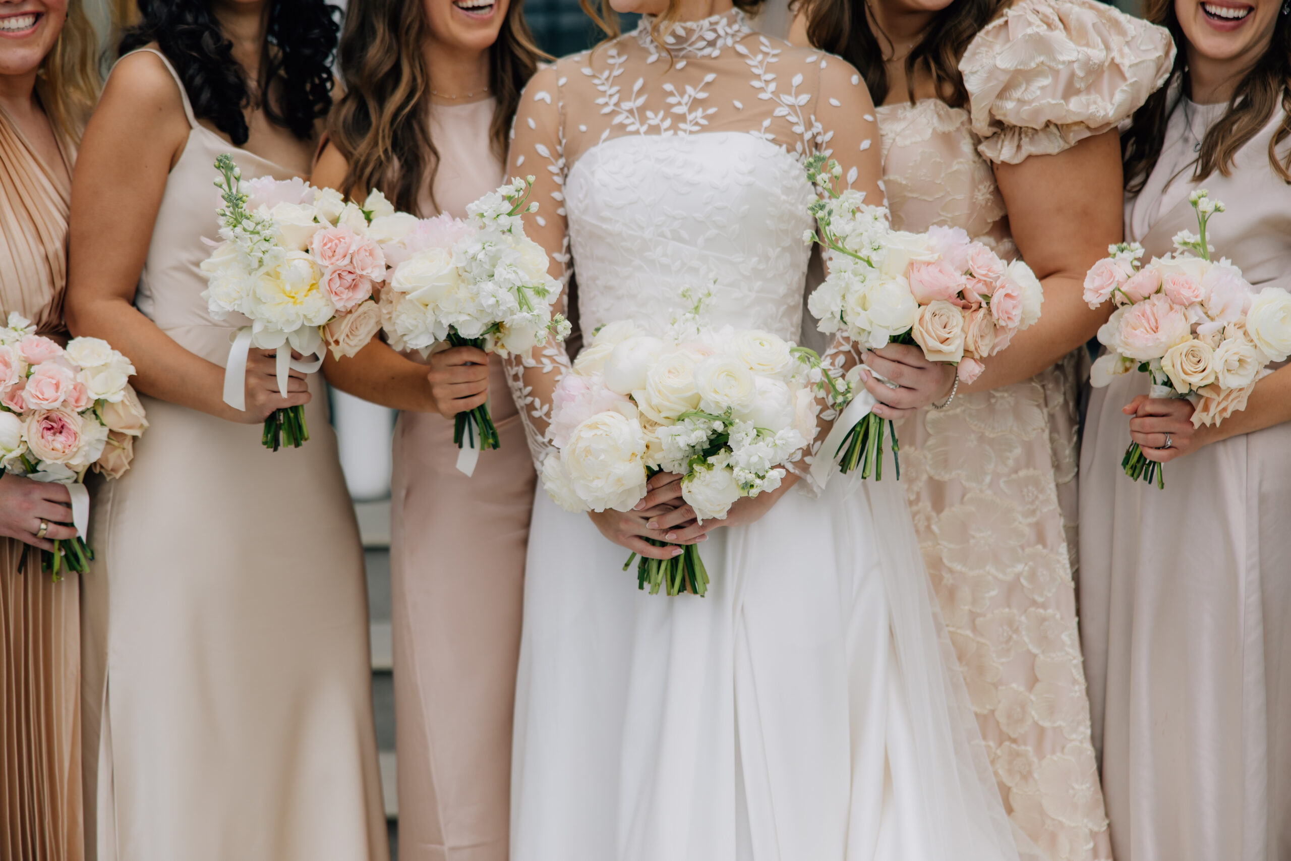 And the venue was where it all started. “I actually chose the colors (champagne for the bridesmaid dresses and blush for the florals) later in the process. It all started with selecting Twenty and Creek as our venue; Dan knew it was going to be Twenty and Creek the moment we walked in. The space felt like the right fit from the start as it was elegant and timeless, with details in design and architecture that I love.”